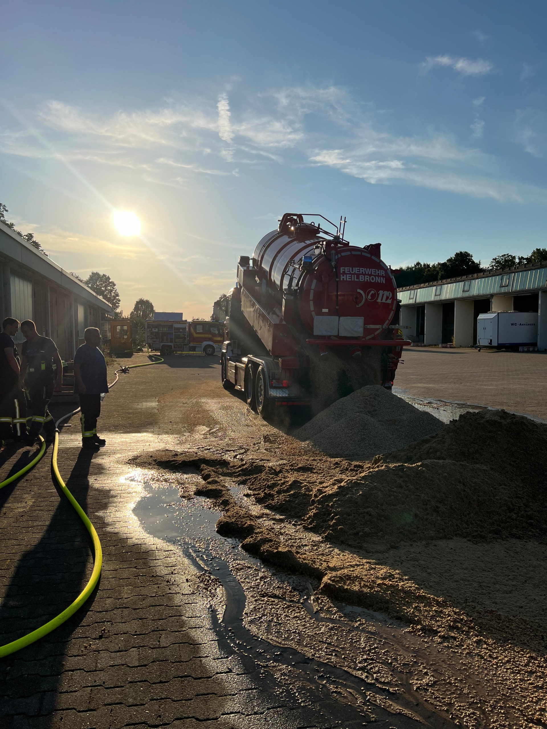 Die Nachbarn bemerkten den Schwelbrand im Keller des Hauses, wo rund sieben Tonnen Pellets gelagert waren? Da ein solcher Einsatz selbst für erfahrene Kräfte ungewöhnlich war, arbeiteten die Feuerwehren aus Neuenstadt und Heilbronn eng zusammen. Die Pellets wurden mit einem speziellen Vakuumfass abgesaugt, gelöscht und sicher abtransportiert. Diese aufwändigen Maßnahmen zogen sich bis in die Nacht. Um circa 1:45 Uhr war Einsatzende?