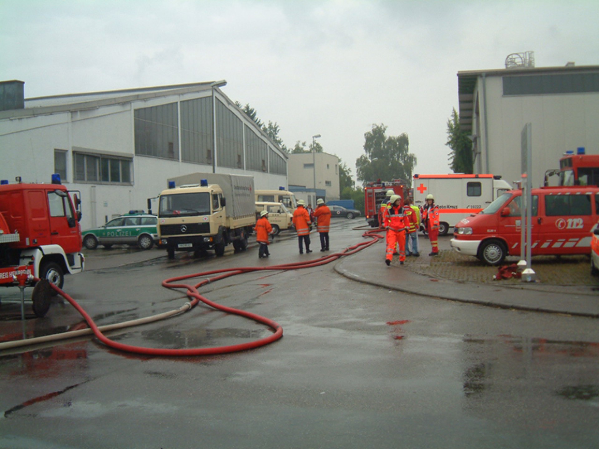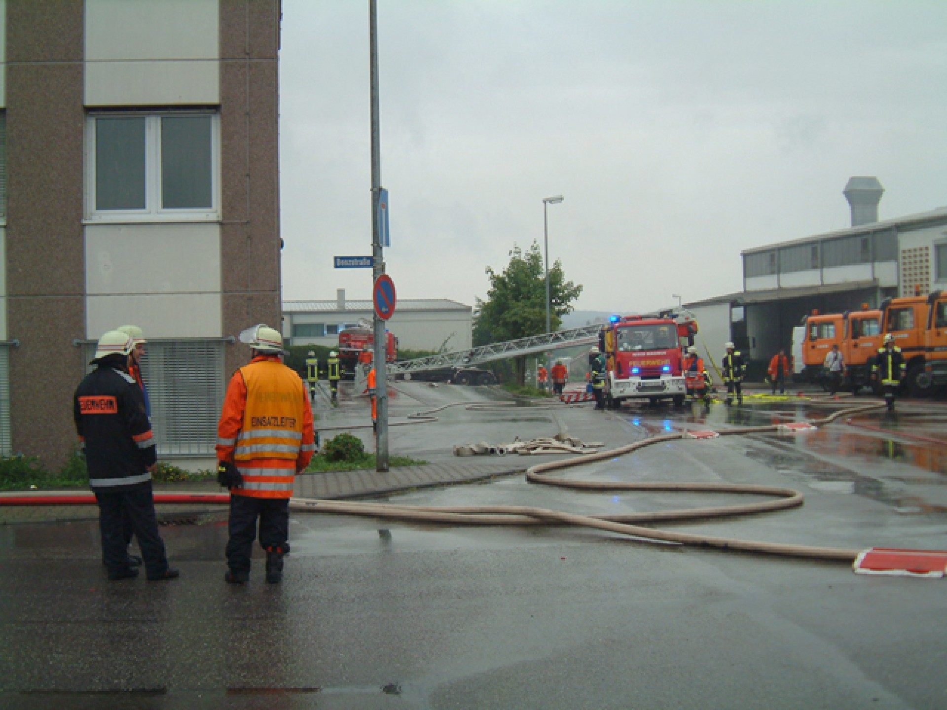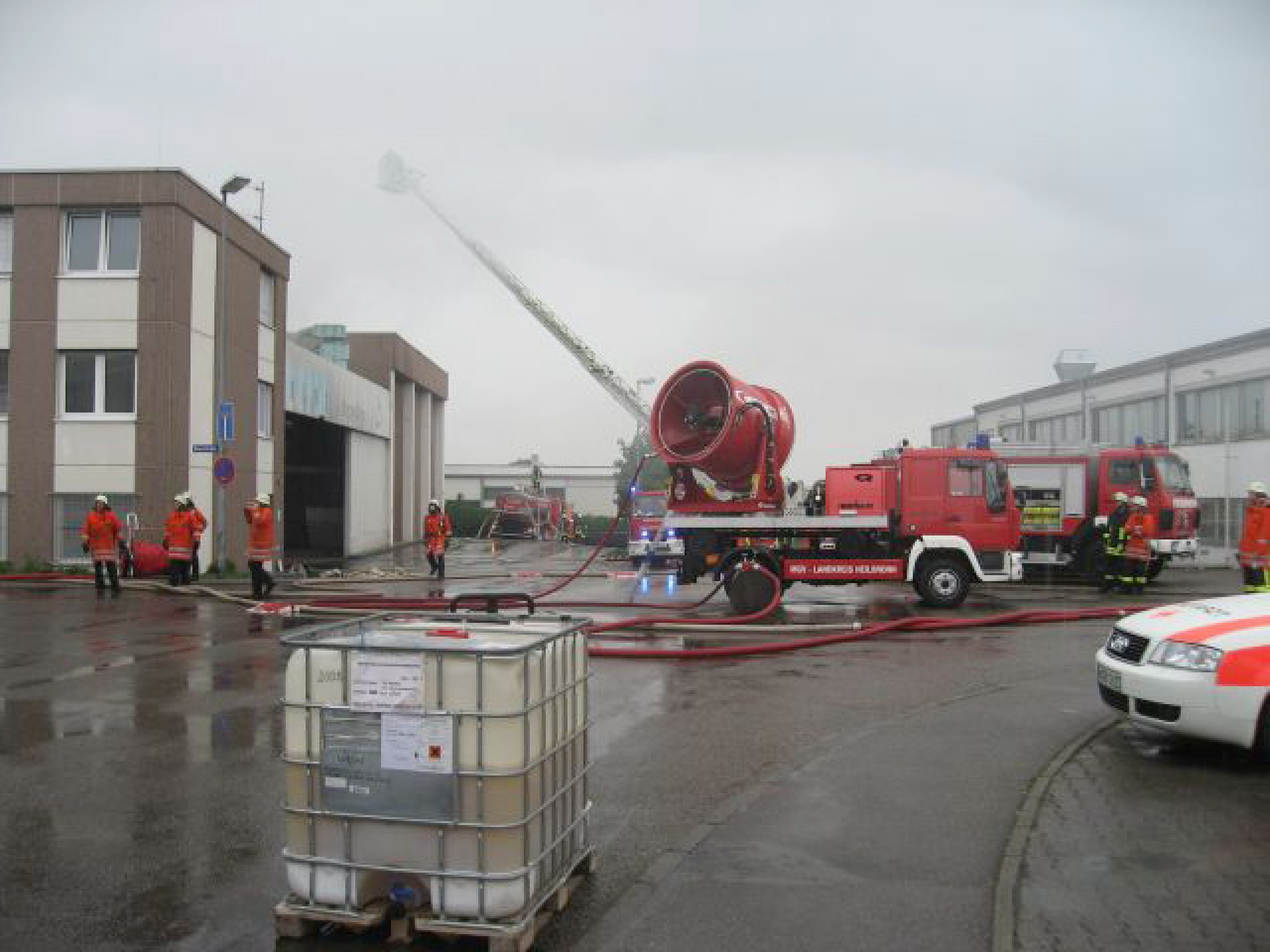 In der Spitze waren ca. 160 Feuerwehrleute mit 40 Fahrzeugen an der Einsatzstelle. Der Rettungsdienst war mit einem Rettungswagen und einem Notarztwagen sowie dem Leitenden Notarzt vor Ort. Von der Polizei wurde das Industriegebiet weiträumig abgesperrt.