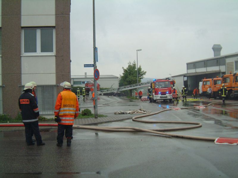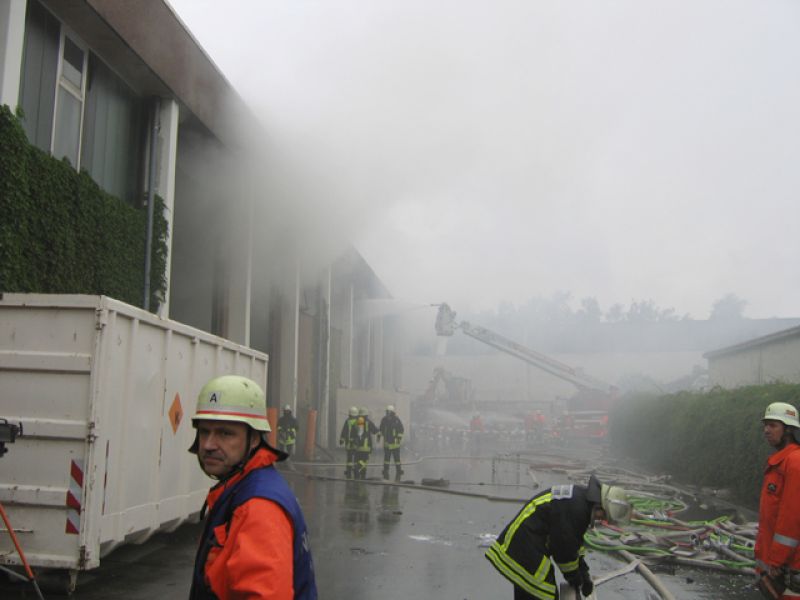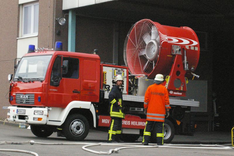 Beim Eintreffen der ersten Einsatzkräfte war bereits eine starke Rauchentwicklung festzustellen. Auf Grund der guten Kentnisse über den Betrieb durch viele Begehungen und Übung wurde sofort Vollalarm für die Feuerwehr Schwaigern ausgelöst. Nur wenig später wurden eine Drehleiter und ein GW-Mess angefordert.
