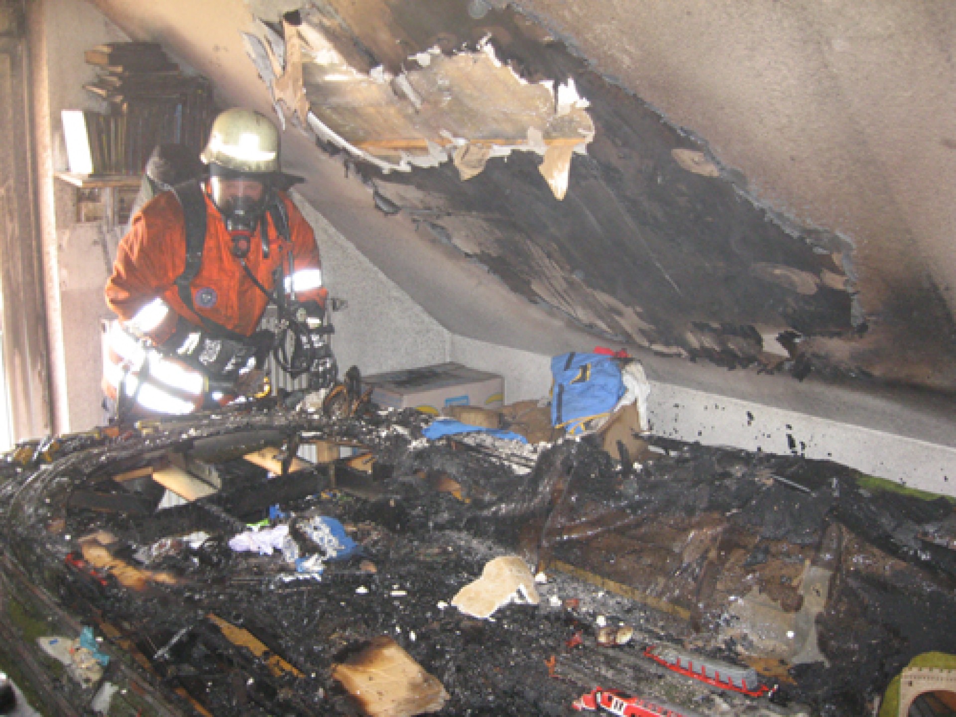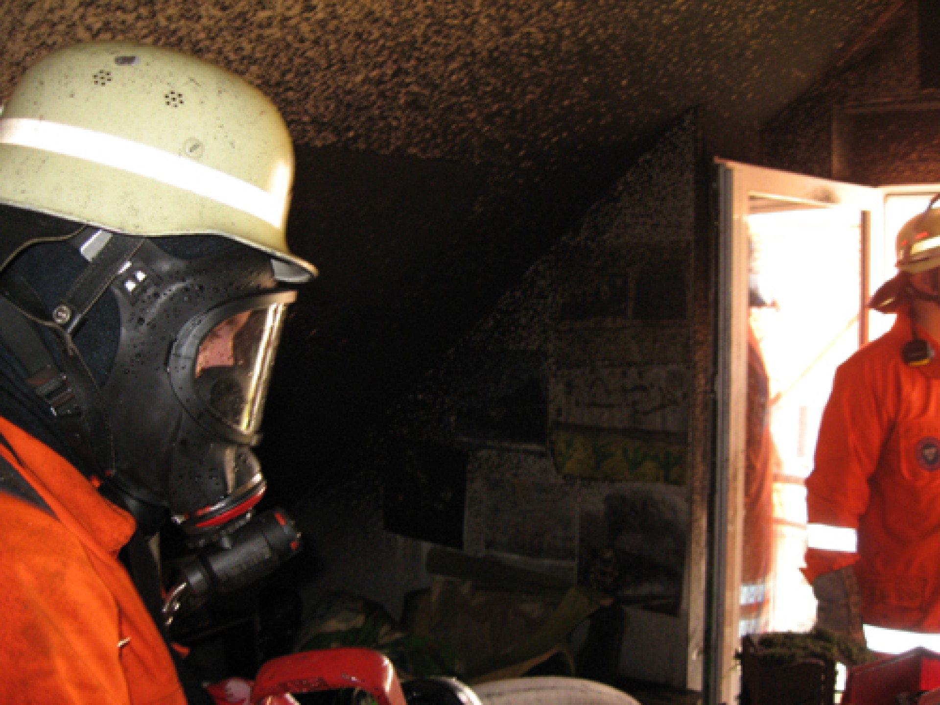 Vermutlich durch eine Explosion von Lösungsmitteln stand eine Wohnung im Dachgeschoss eines Mehrfamilienhauses am Dienstag Morgen in Brand. Die Wohnungstür war zugeschlagen, ein Kind zunächst vermisst. Nach vergeblicher Suche durch die Atemschutztrupps stellte sich später jedoch glücklicherweise heraus, dass das Kind bereits bei seiner Mutter auf der Straße stand. Durch das schnelle Eingreifen der Feuerwehr konnte der Brand effektiv eingegrenzt und gelöscht werden, weiterer Schaden wurde verhindert.