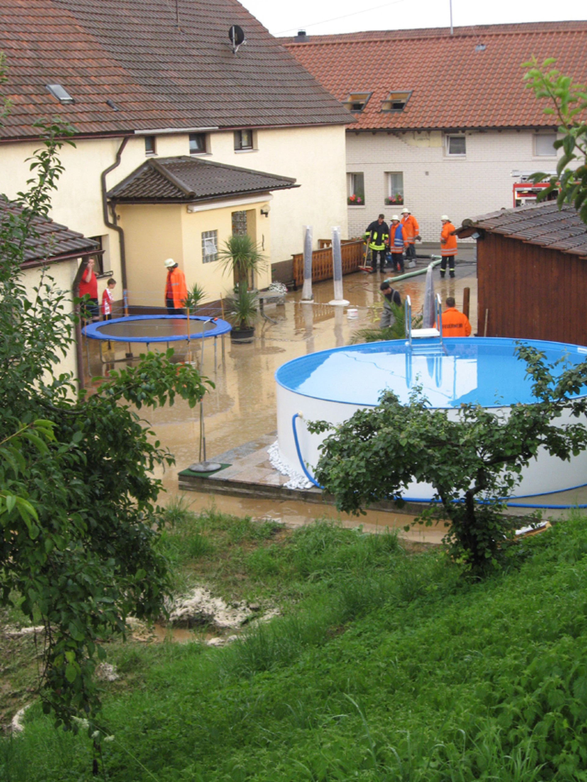 Nun schon zum dritten Mal in kurzer Folge fielen bei einem Unwetter erneut große Regenmengen nieder. Auf dem Lobenbacher Hof wurden zahlreiche Garagen sowie ein Keller überflutet. Die Feuerwehr Neuenstadt war mit der Führungsschleife und der Abteilung Stein/Kochertürn vor Ort.