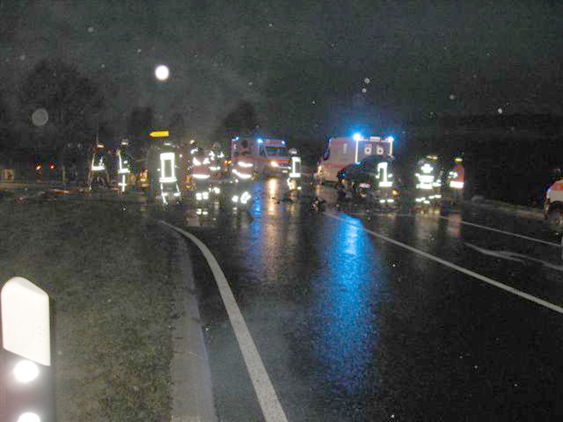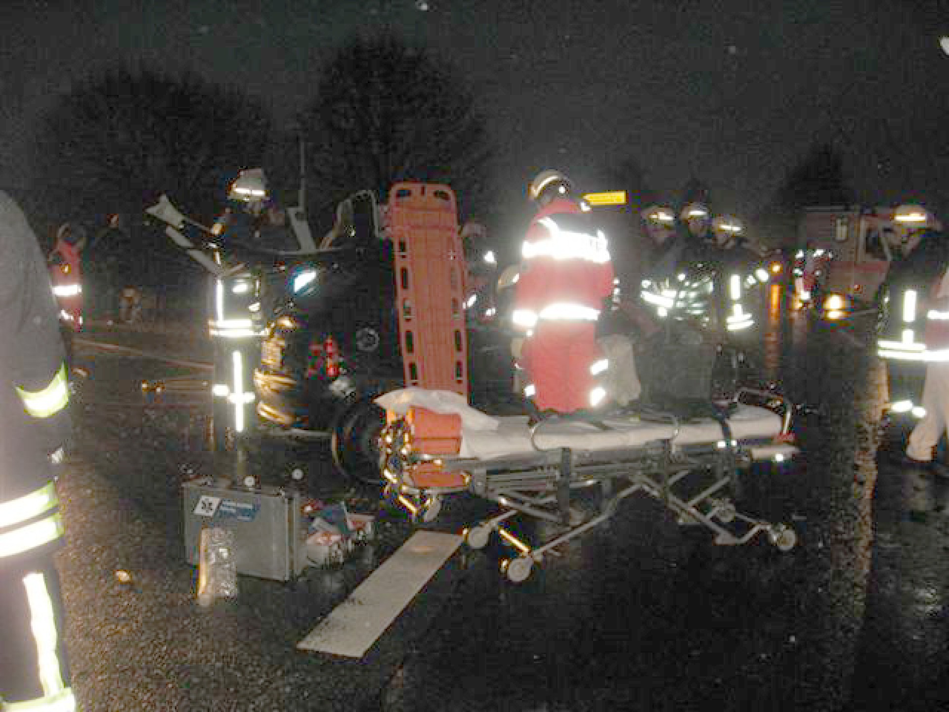 Die Personen des dritten am Unfall beteiligten PKW waren nicht eingeklemmt, so dass die Versorgung durch den Rettungsdienst erfolgen konnte.