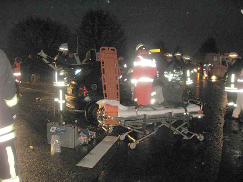 Bei einem Frontalzusammenstoß zwischen einem Audi A3 und einem Opel Corsa, der nach links in die K2135 einbiegen wollte, wurde der Corsa –Fahrer schwerverletzt im Fahrzeug eingeklemmt und musste mit hydraulischem Rettungsgerät aus dem Fahrzeug befreit werden.