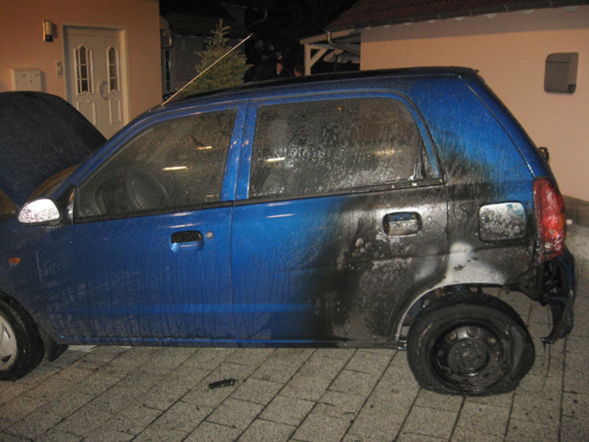 Aufgrund von heißer Grillkohle neben einer Biomülltone wurde diese entzündet, woraufhin ein in unmittelbarer Nähe der Tonne geparkter Pkw ebenfalls in Brand geriet.