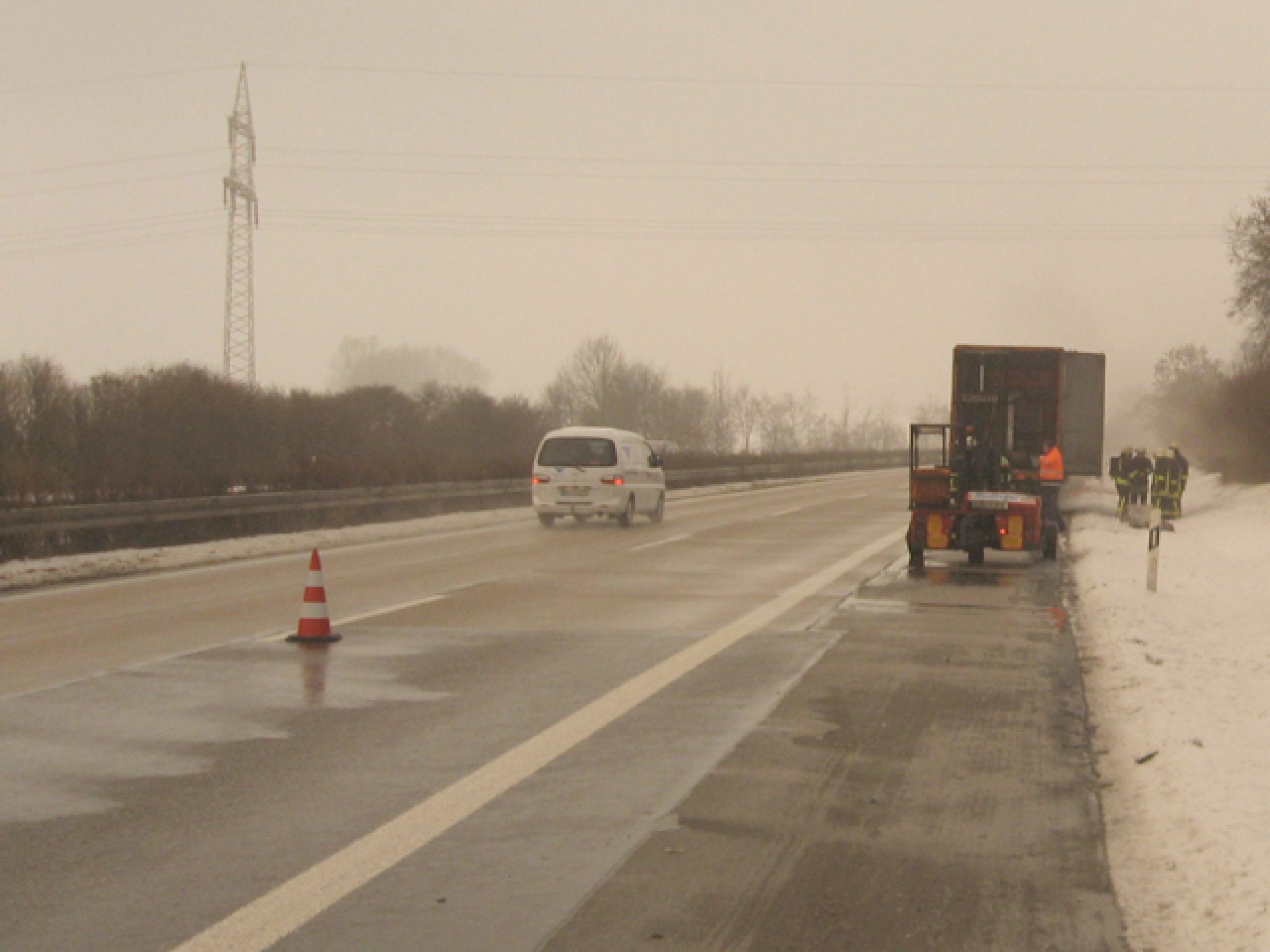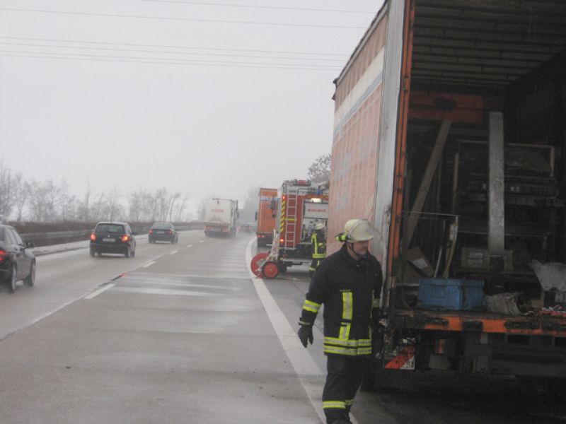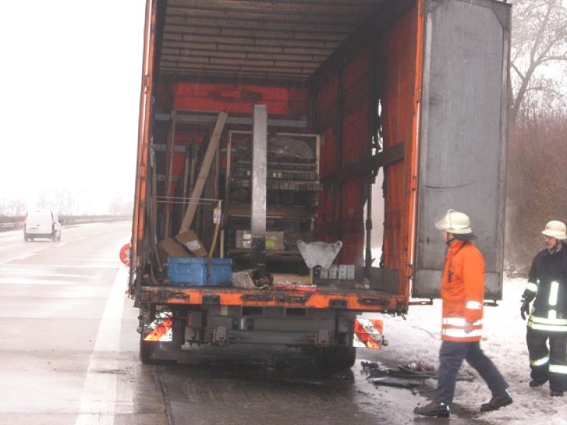 Vermutlich durch einen technischen Defekt geriet der Laderaum eines Lkw-Anhängers auf der Autobahn A81 in Fahrtrichtung Stuttgart in Brand. Der Fahrer konnte das Fahrzeug noch rechtzeitig auf den Standstreifen lenken und einen Notruf absetzen. Die Feuerwehr Neuenstadt löschte den Brand mit dem Schnellangriff des Hilfeleistungslöschfahrzeuges ab und sicherte die Unfallstelle.