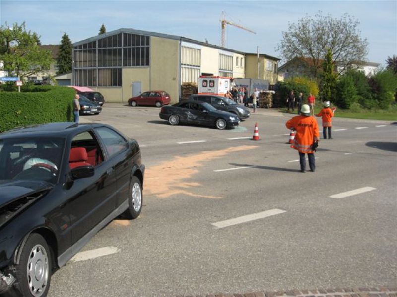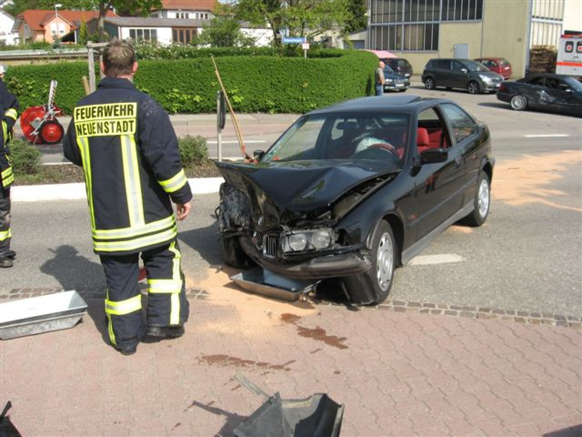Ein PKW der Marke BMW kollidierte mit einem Mercedes im Bereich der Beifahrertür, wodurch dieser durch die Wucht des Aufpralls gedreht wurde. Der BMW schleuderte über die Kreuzung auf die Gegenfahrbahn. Die Insassen der Fahrzeuge wurde dabei leicht verletzt und vom HVO Neuenstadt erstversorgt. Die weitere Versorgung erfolgte durch den Rettungsdienst mit RTW und Notarzt aus Möckmühl.