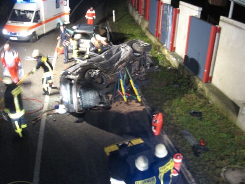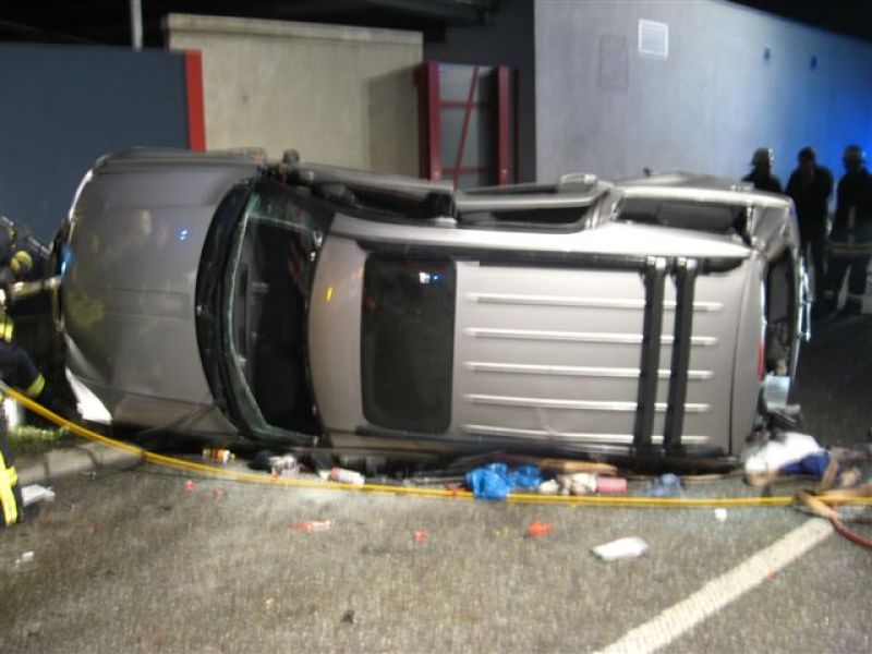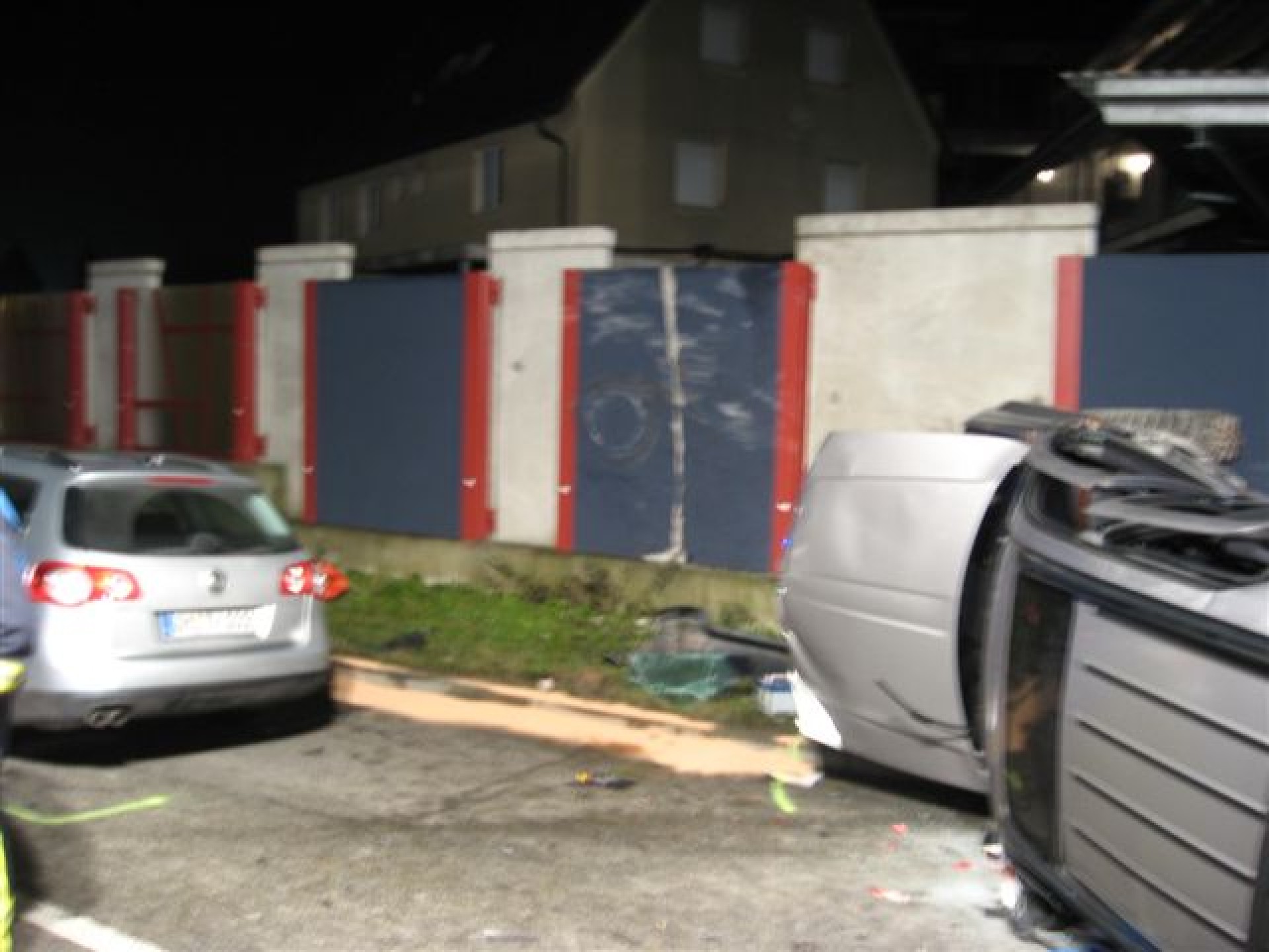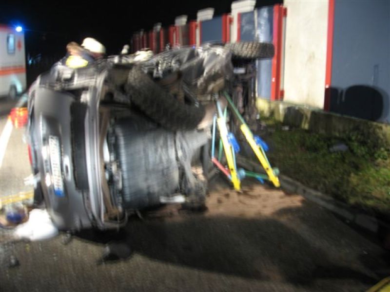 Der Geländewagen fuhr anschließend gegen die Lärmschutzwand der Umgehungsstraße, kippte um und blieb anschließend auf der Fahrerseite zum Liegen.