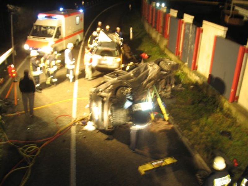 Ein Geländewagen war nach links auf die Gegenfahrbahn gekommen und prallte mit einem PKW VW Passat auf der Gegenfahrbahn zusammen.