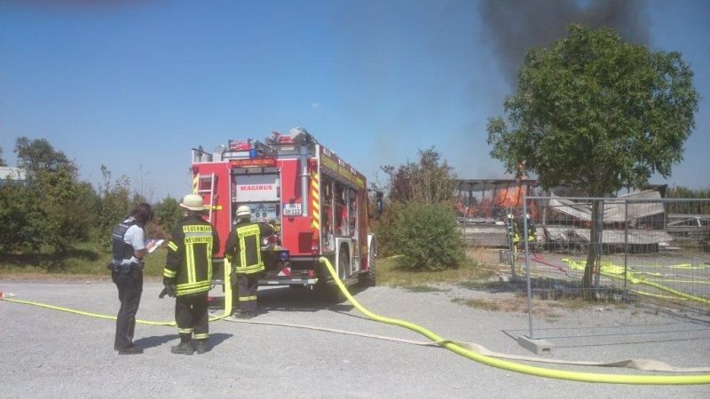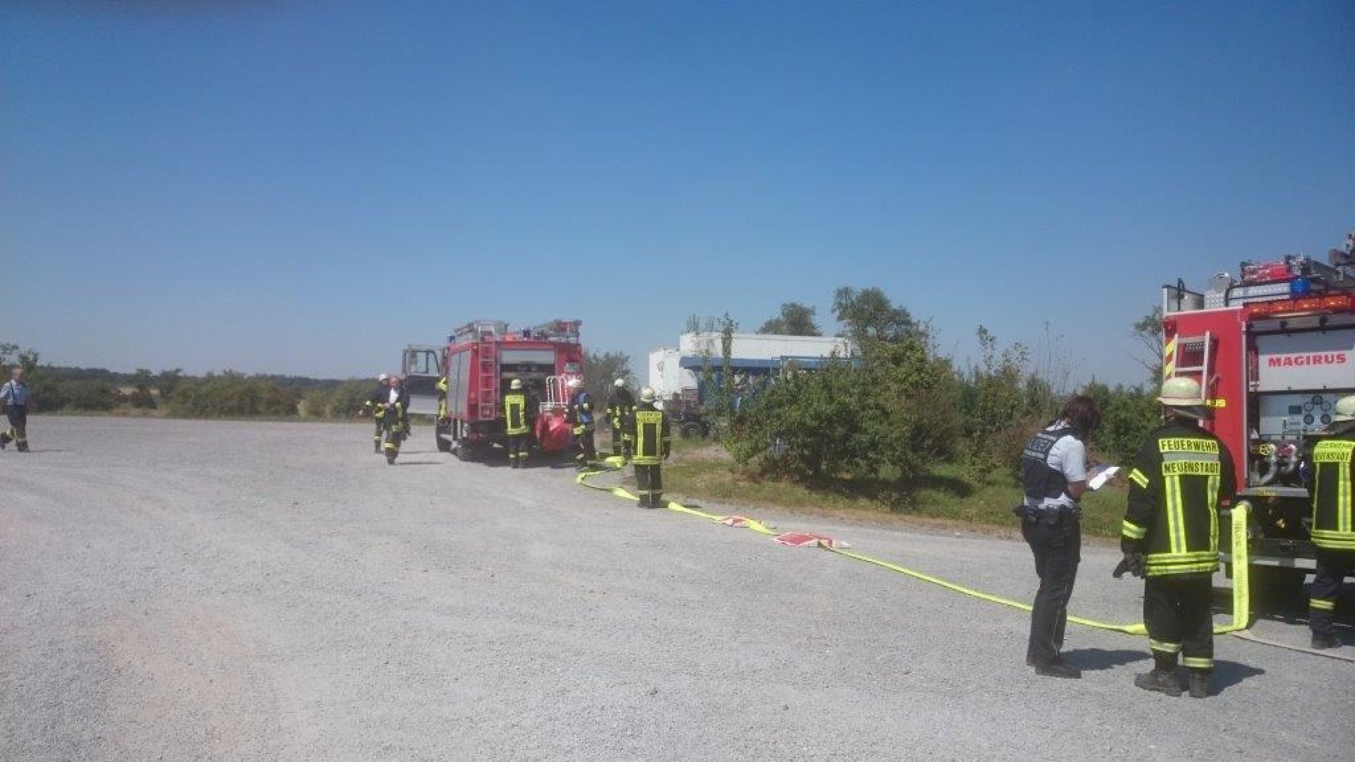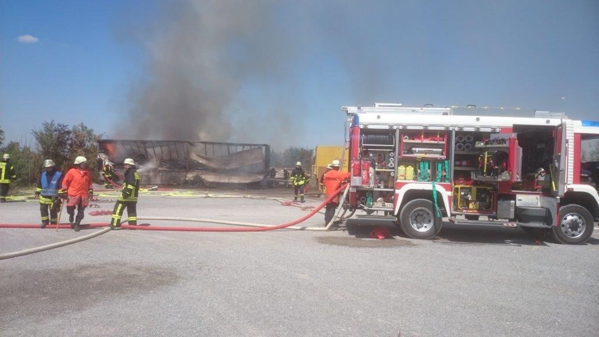 Auf dem Gelände des Reiterhofs Küffner in Neudeck stand ein Sattelauflieger im Vollbrand. Der Auflieger war mit Bierzeltgarnituren beladen.