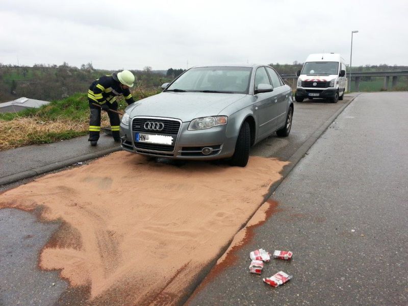 Die Feuerwehr Neuenstadt wurde von einem aufmerksamen Anwohner telefonisch alarmiert, streute den Bereich mit Ölbinder ab und verhinderte so einen Umweltschaden.