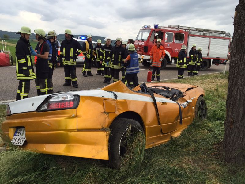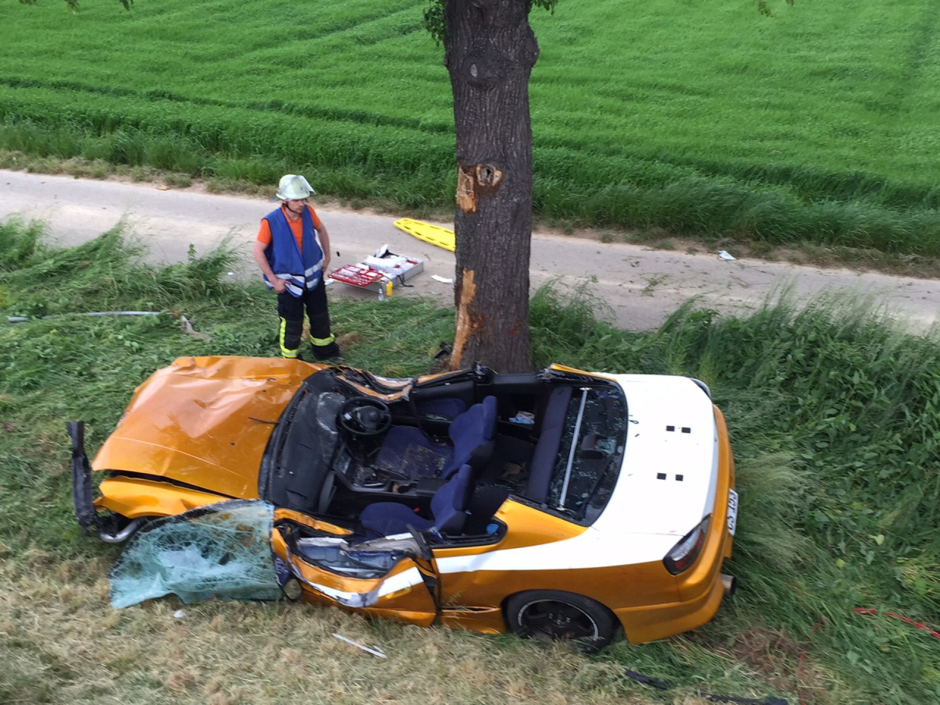 von der Fahrbahn ab und prallte gegen einen Baum. Nach dem Aufprall schleuderte der Wagen auf der Seite weiter und prallte mit dem Dach gegen einen weiteren Baum. Der junge Mann musste von der alarmierten Feuerwehr aus dem Wrack seines Fahrzeugs geschnitten und geborgen werden