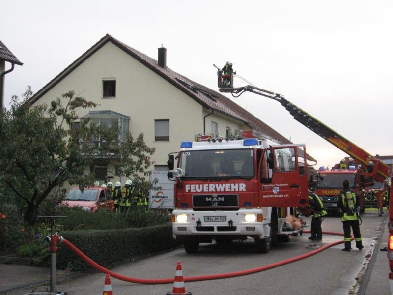 Überlandhilfe mit Drehleiter zu einem Zimmerbrand in Hardthausen-Gochsen