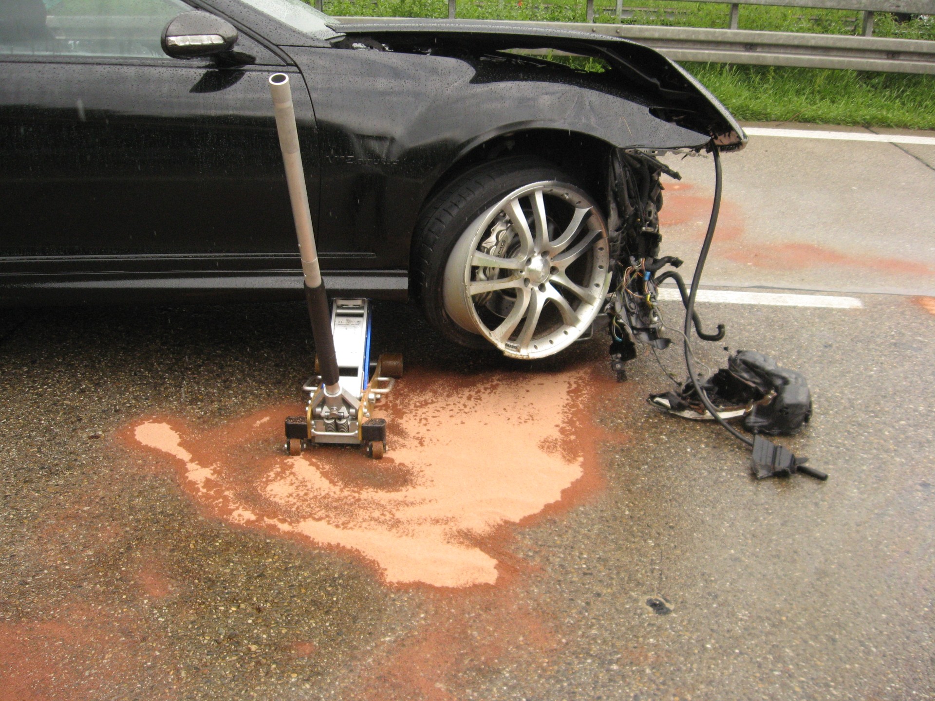 Öl verteilte sich durch starken Regen auf zwei Fahrspuren.