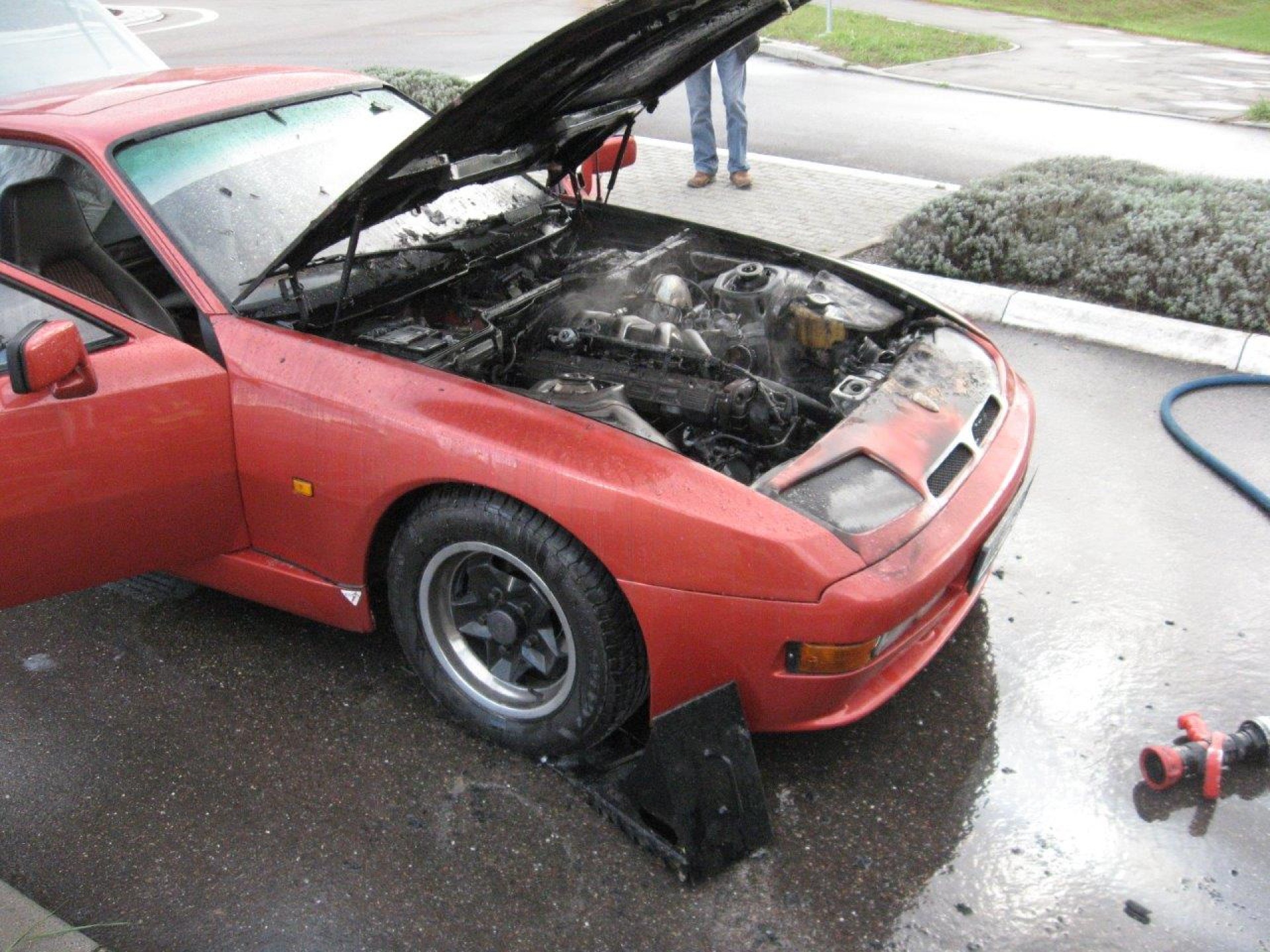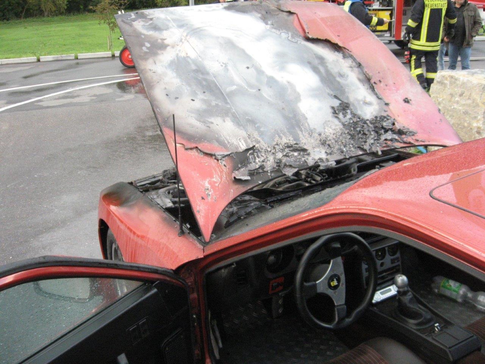 Das Fahrzeug brannte bei Eintreffen der Feuerwehr bereits in voller Ausdehnung.