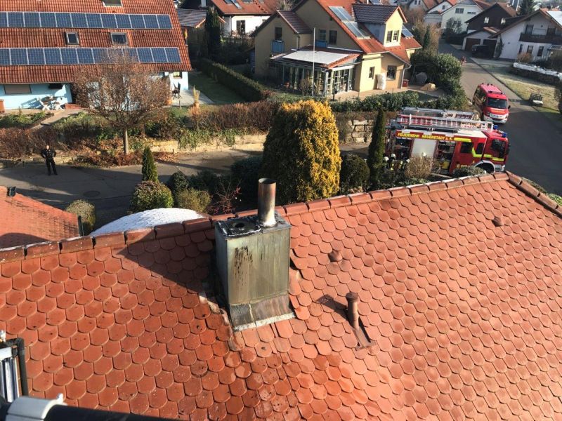 Der Brand im Kamin wurde von der Feuerwehr mit einem CO2 Löscher abgelöscht, zusätzlich auf dem Dachstuhl über die Drehleiter.