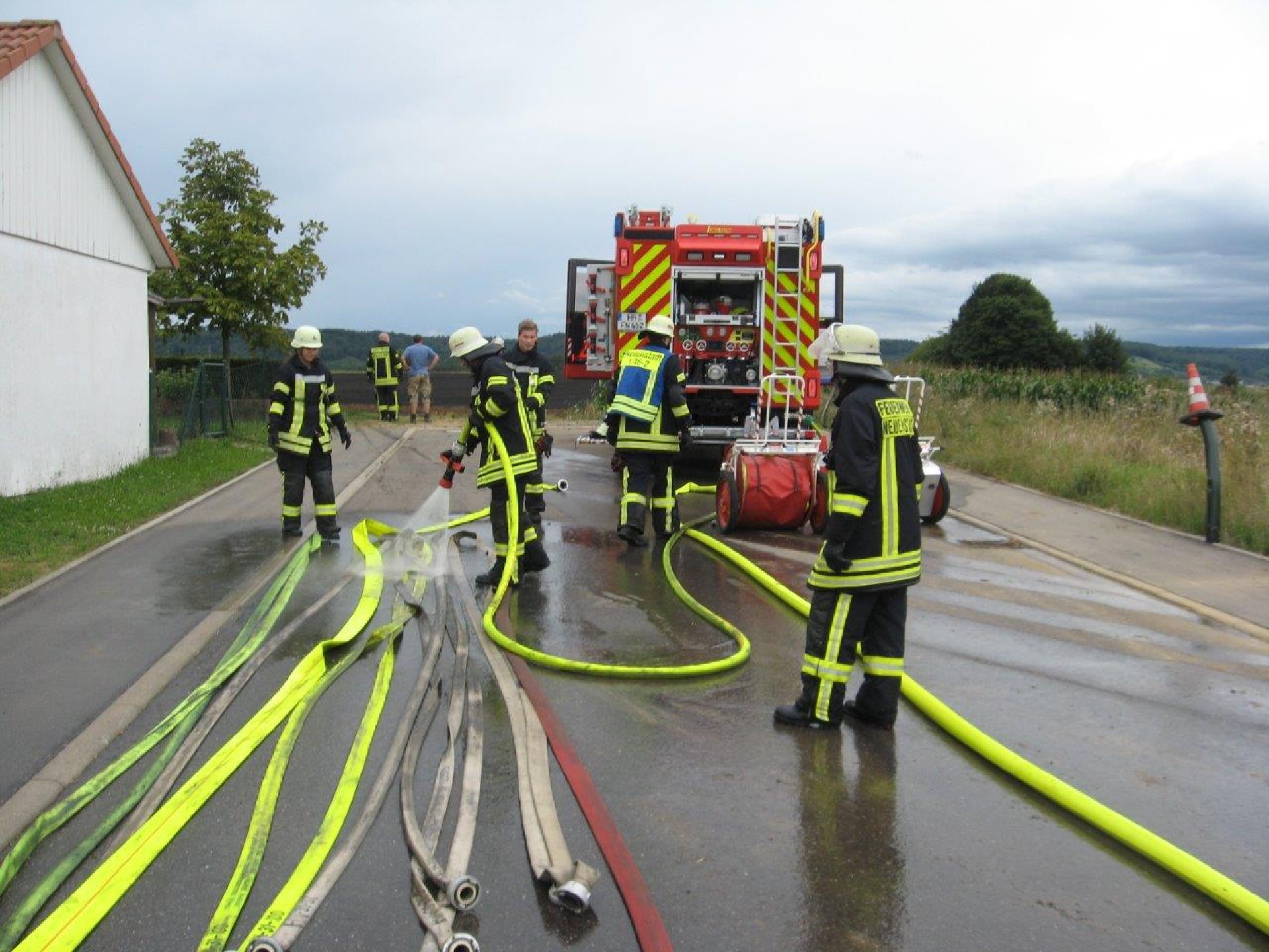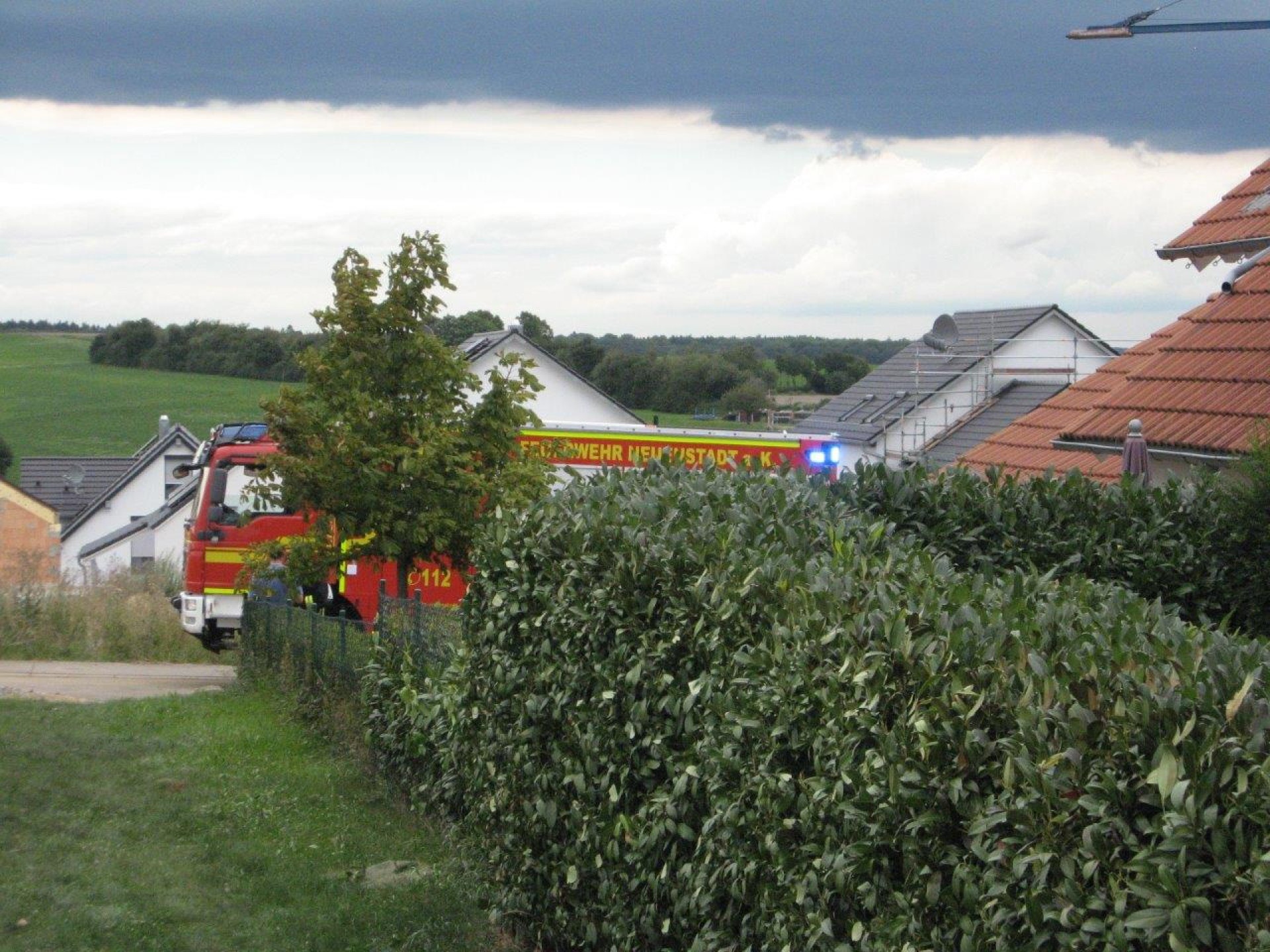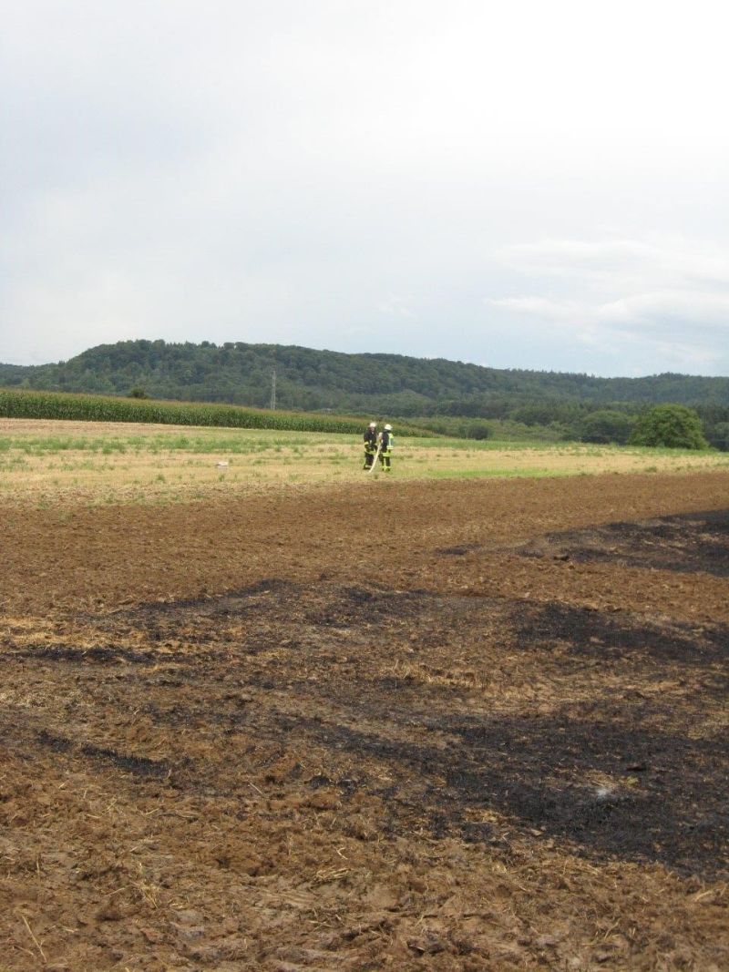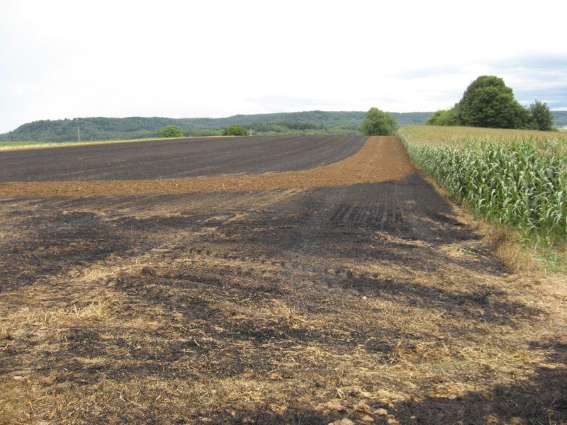 Im Gebiet Daistler 2 in Neuenstadt, gefährlich nahe der letzten Häuserreihe, brannte aus unbekannten Gründen, das Stroh eines abgeernteten Getreidefelds auf einer Fläche von ca. 40000 m².