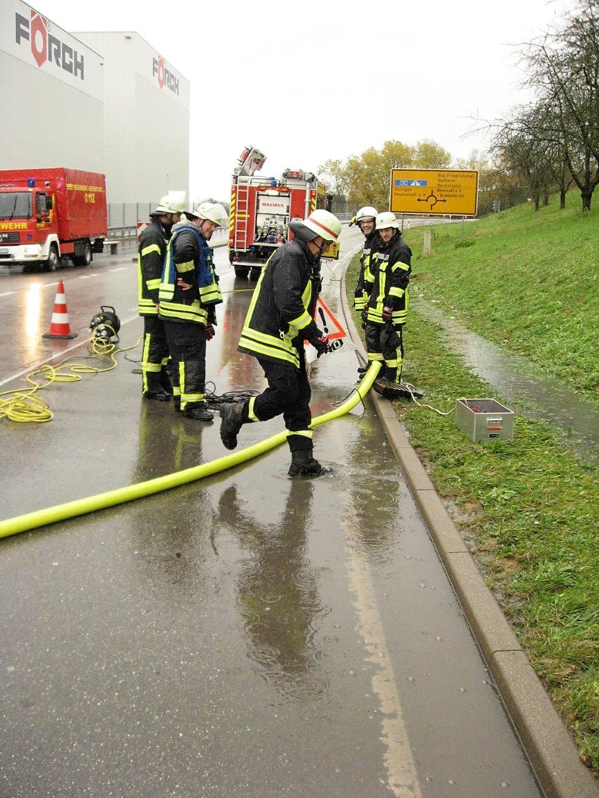 Die Landesstraße L720 wurde am Ortsausgang Richtung Neuenstadt bei starkem Regen halbseitig überflutet. Der Kanal war in diesem Bereich verstopft. Die Feuerwehr pumpte das Wasser mittels Schmutzwasserpumpen ab.