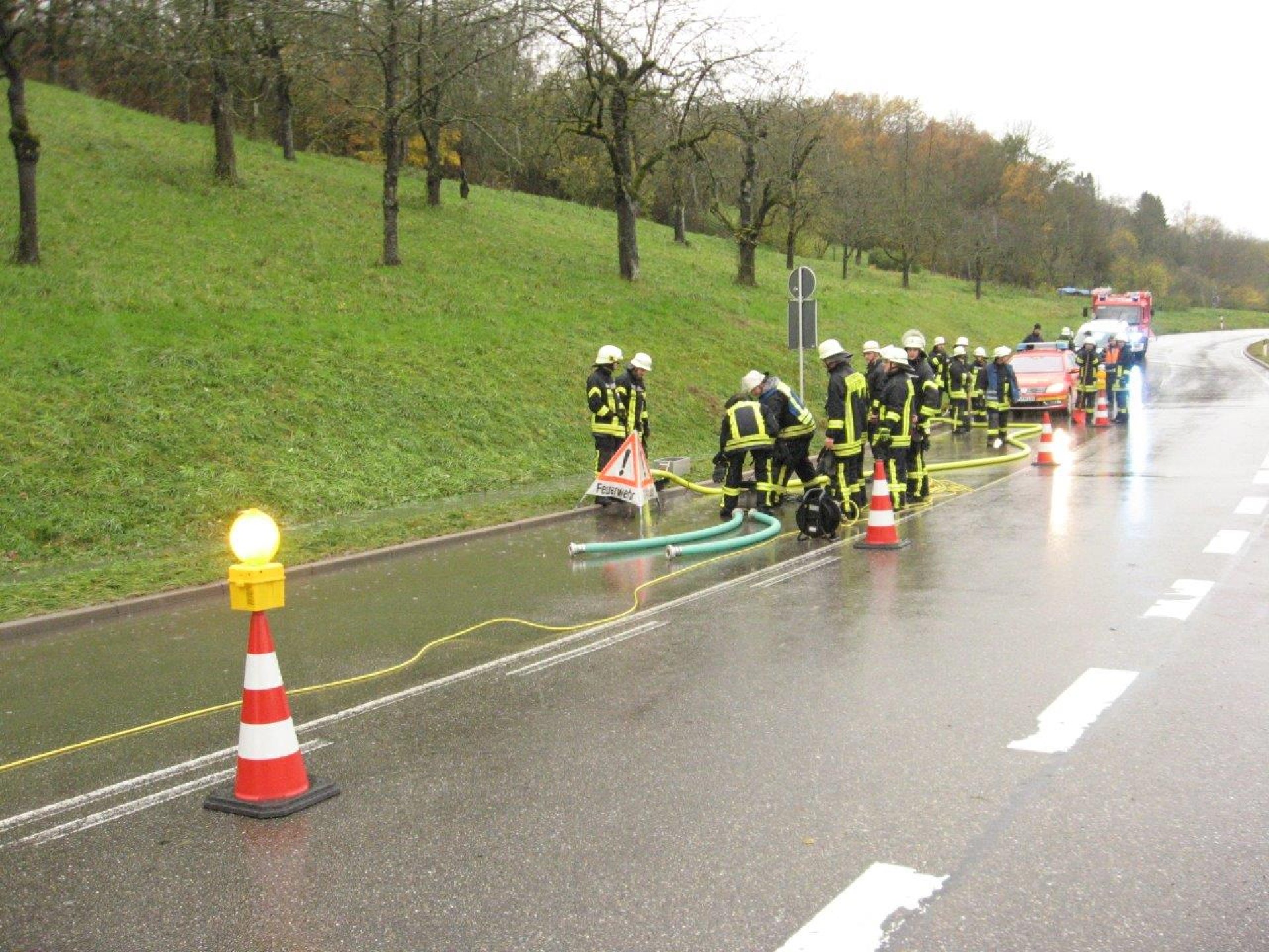 Einsatzbericht - Straßenüberflutung nach starkem Regen auf der Landesstraße L720 in Neuenstadt-Kochertürn