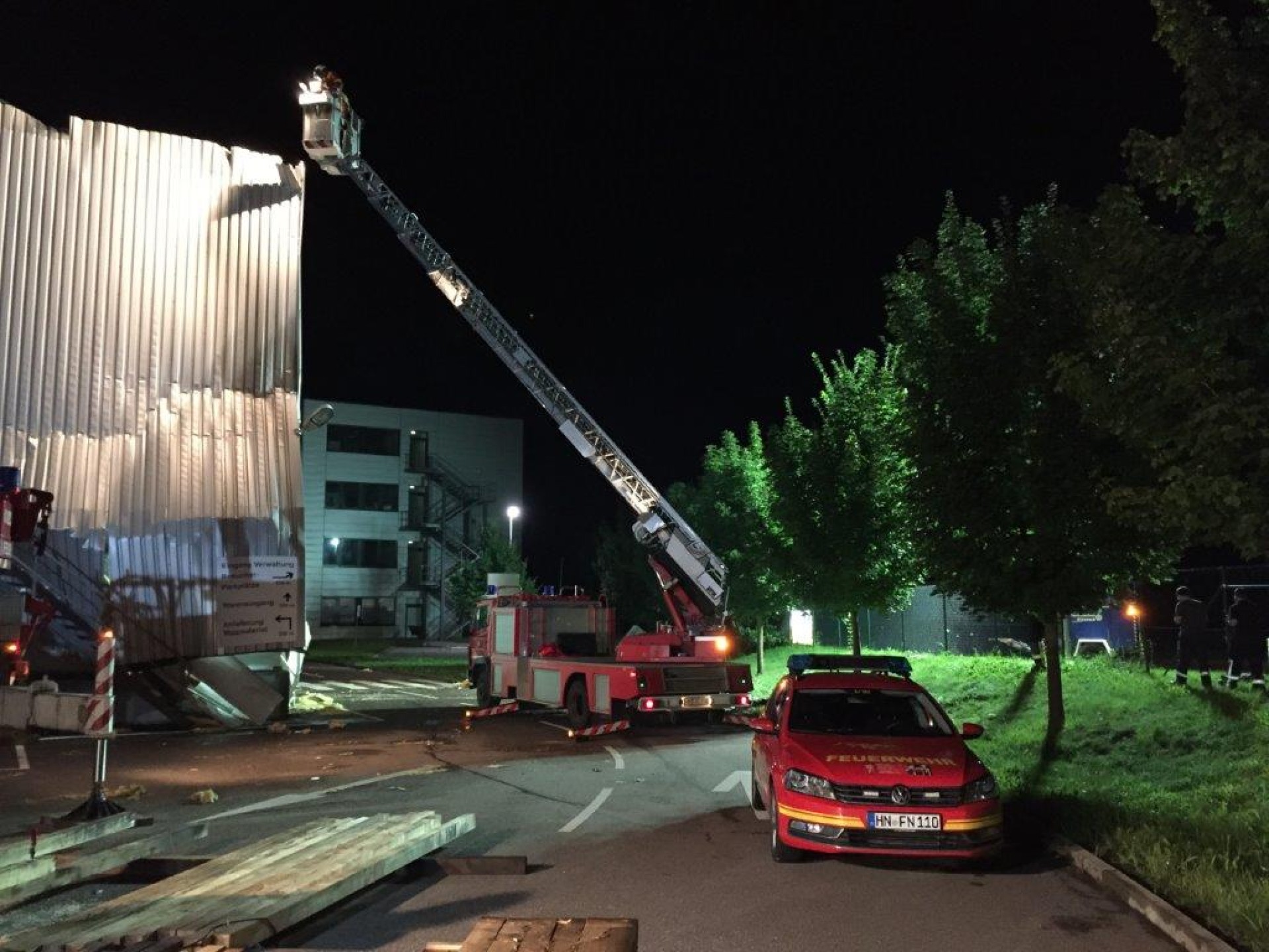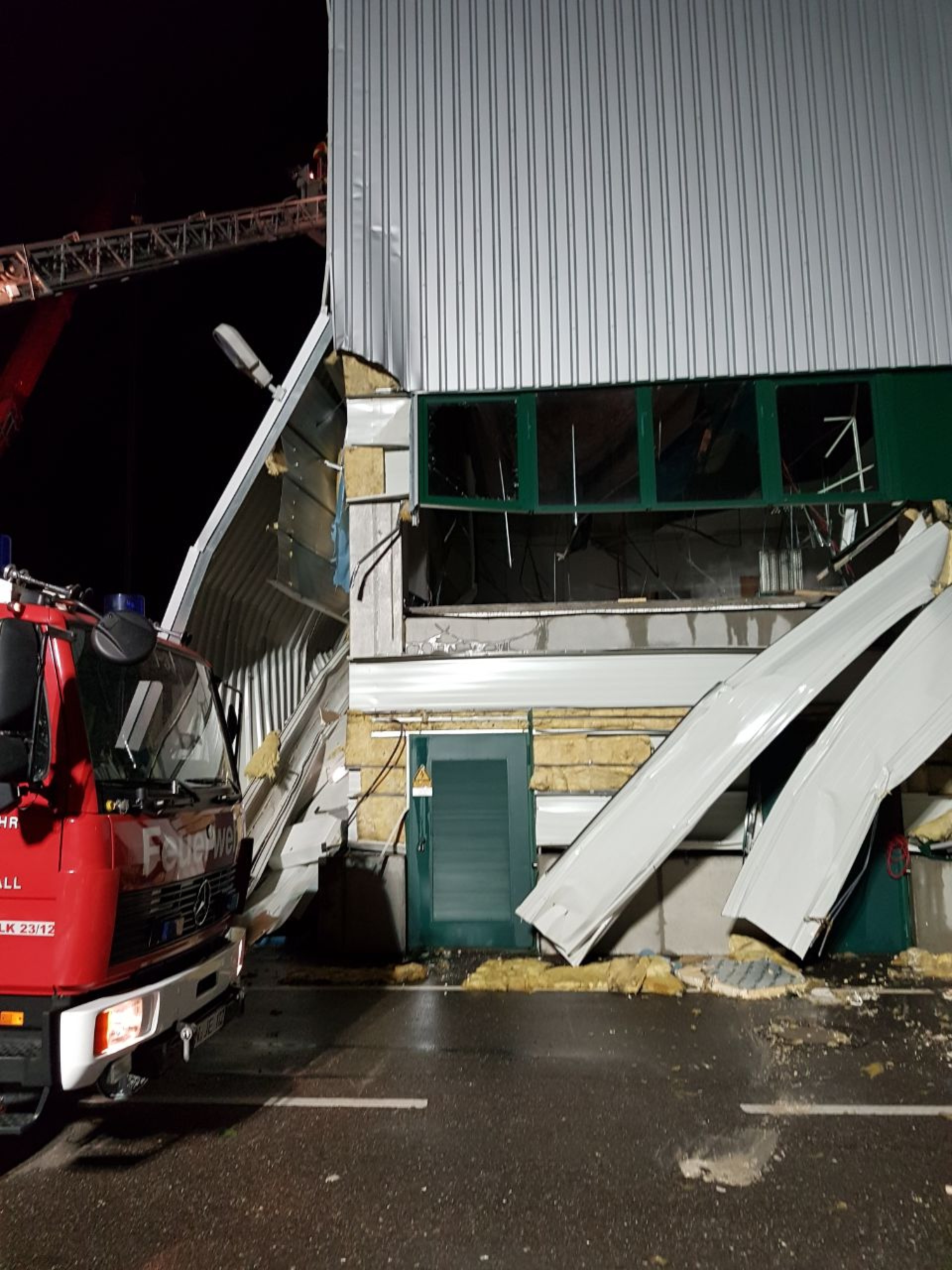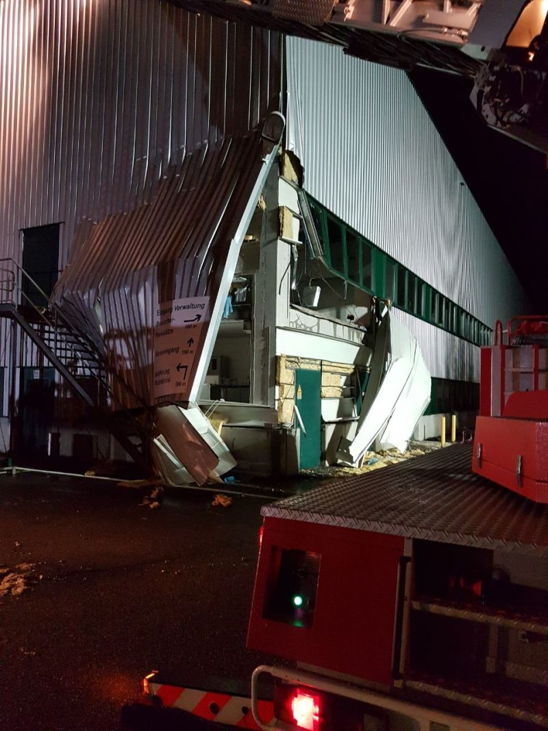 Schlimm traf es auch zwei Unternehmen im Gewerbegebiet im GIK. Bei beiden Firmen wurden die Gebäude durch Winddruck und Wasserlast stark beschädigt. Der Schaden hierbei liegt im hohen sechsstelligen Bereich.