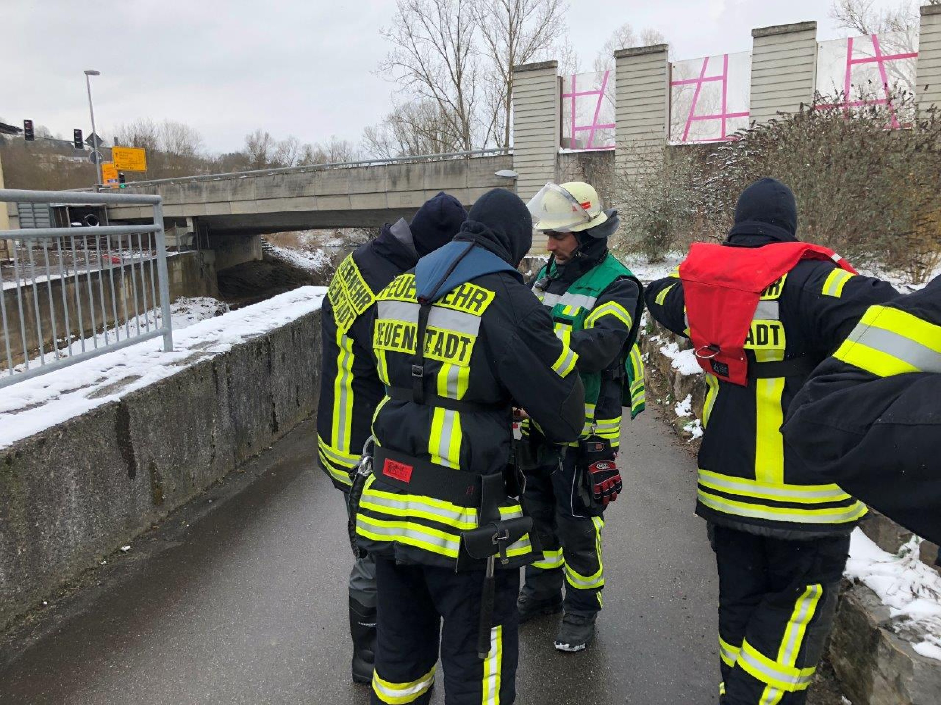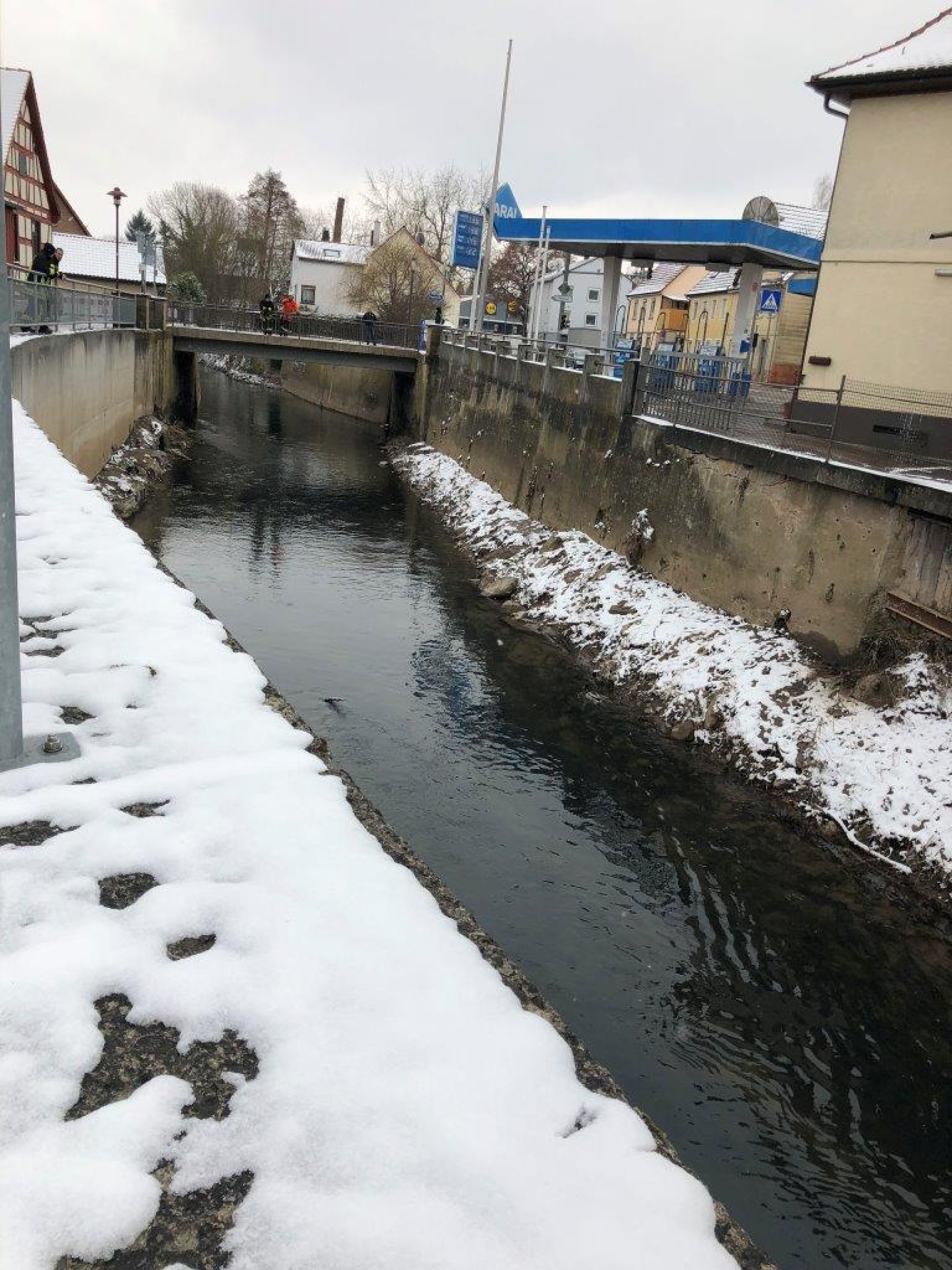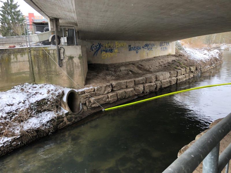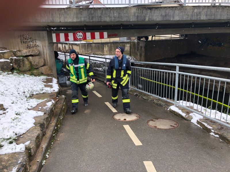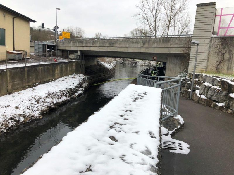Die Feuerwehr Neuenstadt wurde gegen 11:18 Uhr zu einer Gewässerverunreinigung in der Brettach alarmiert. Von der Brettachbrücke aus, bei der Aral-Tankstelle hatten Anwohner einen größeren Ölfilm auf der Brettach entdeckt und die Leitstelle alarmiert.