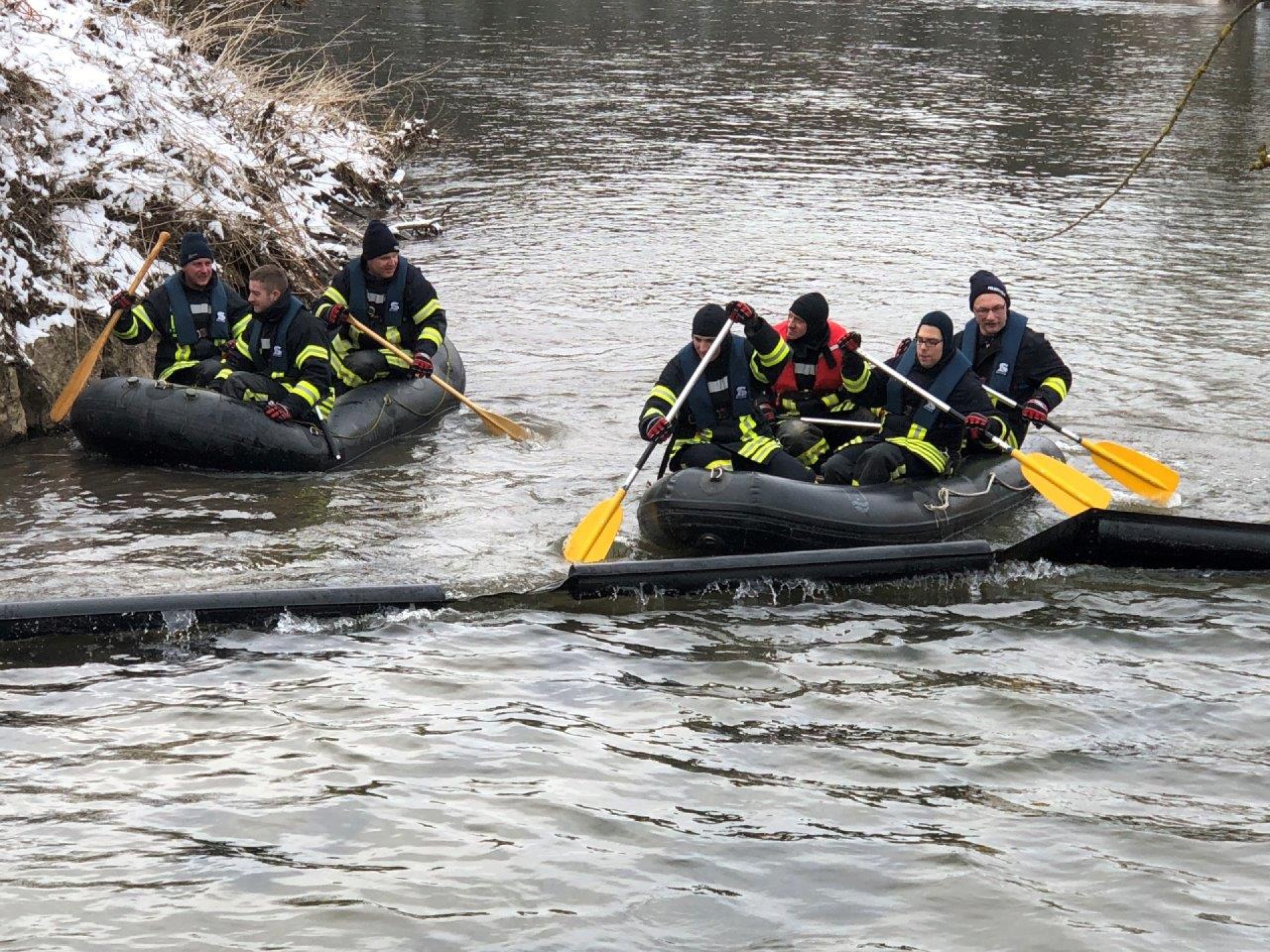 Die Ölsperre blieb noch bis zum nächsten Tag im Wasser um auch noch weitere Ölreste zu binden.