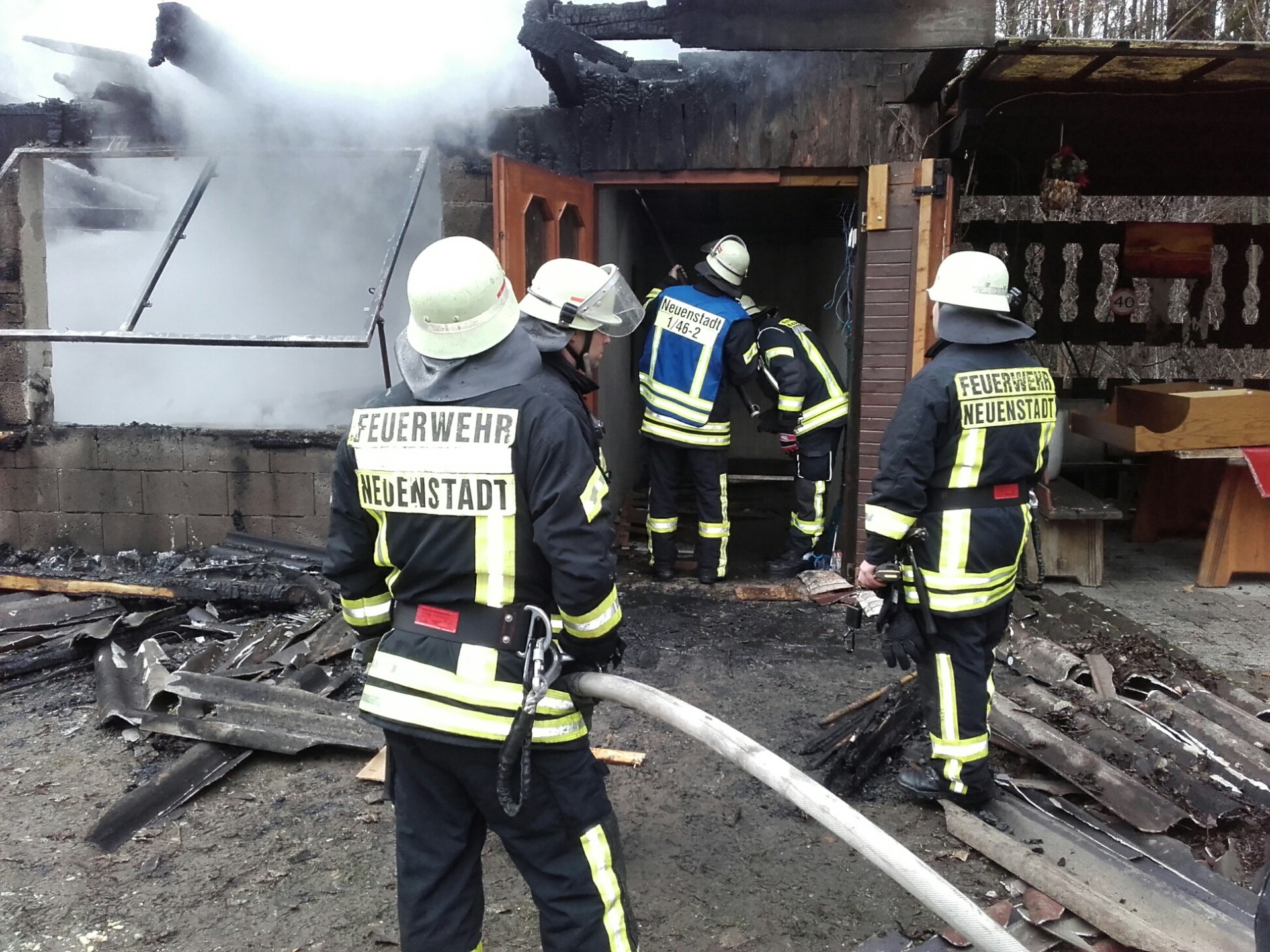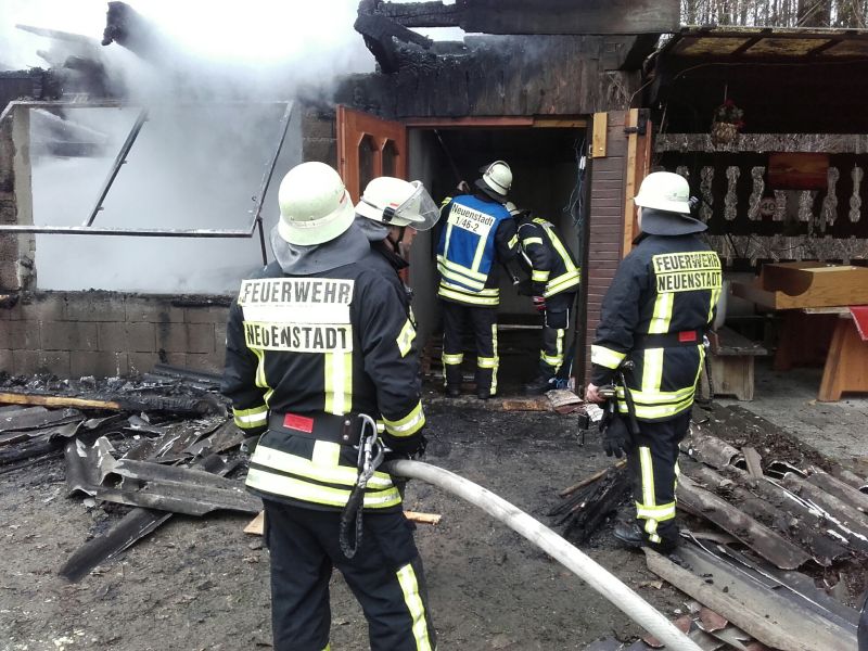 Beim Eintreffen der FW Neuenstadt, Abteilung Stein-Kochertürn, stand der Innenraum des massiven Gebäudes bereits im Vollbrand. Das Feuer hatte sich auch bereits in die Flachdachkonstruktion ausgebreitet.
