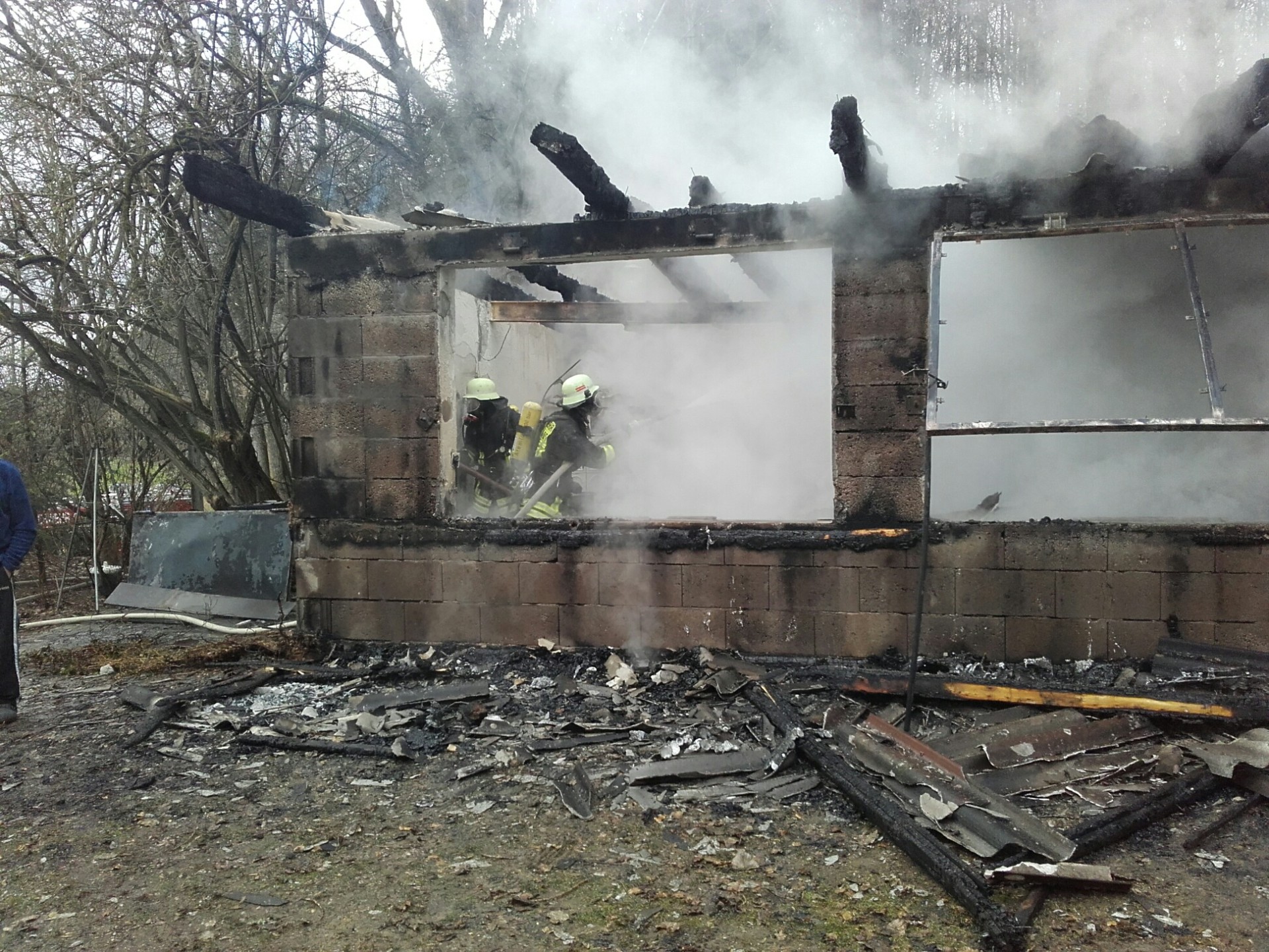 Nachdem größere Teile des verbrannten Inventars aus dem Gebäude entfernt waren, konnten die noch schwelenden Gebäudeteile endgültig abgelöscht werden.