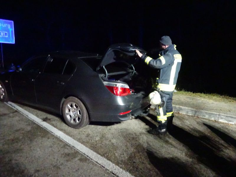 Bei Eintreffen der Feuerwehr war kein Brand mehr festzustellen. Die Fahrzeugbatterie im Kofferraum des PKWs war wahrscheinlich implodiert und es bildeten sich Rauchschwaden. Die Batterie wurde abgeklemmt und das Fahrzeug an den Abschleppdienst übergeben.