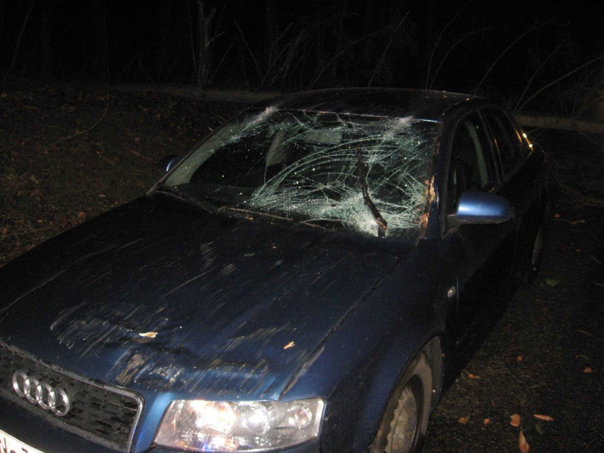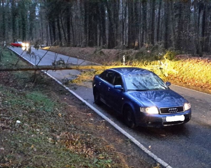 Glück im Unglück hatte dabei der Fahrer eines Audi. Wenige Meter vor seinem PKW fiel der Baum und traf im Fallen den fahrenden PKW im Bereich der Motorhaube und der Frontscheibe.