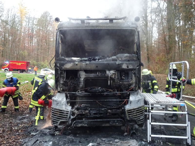 LKW-Brand auf der L1095 Bürg Fahrtrichtung Züttlingen