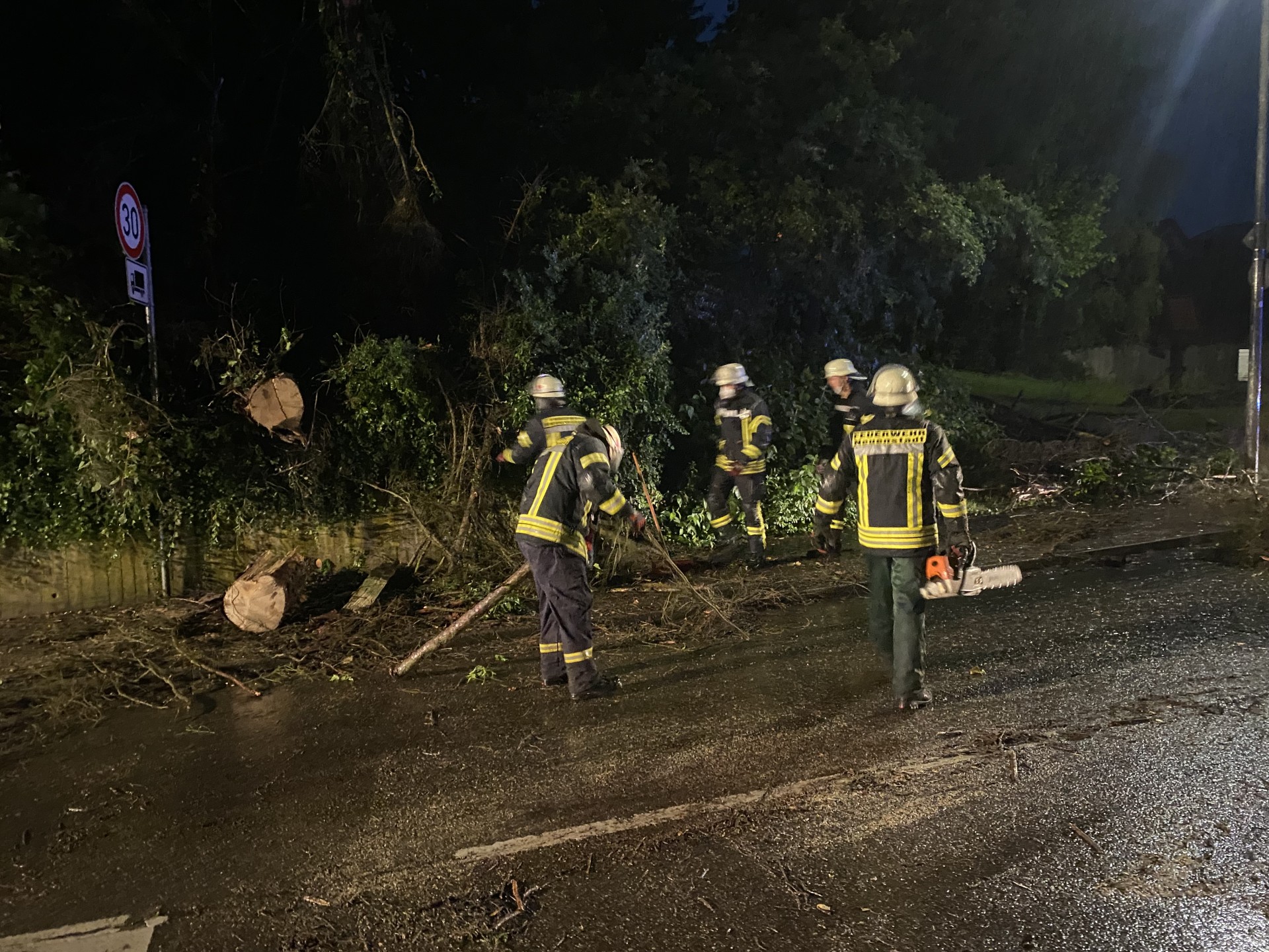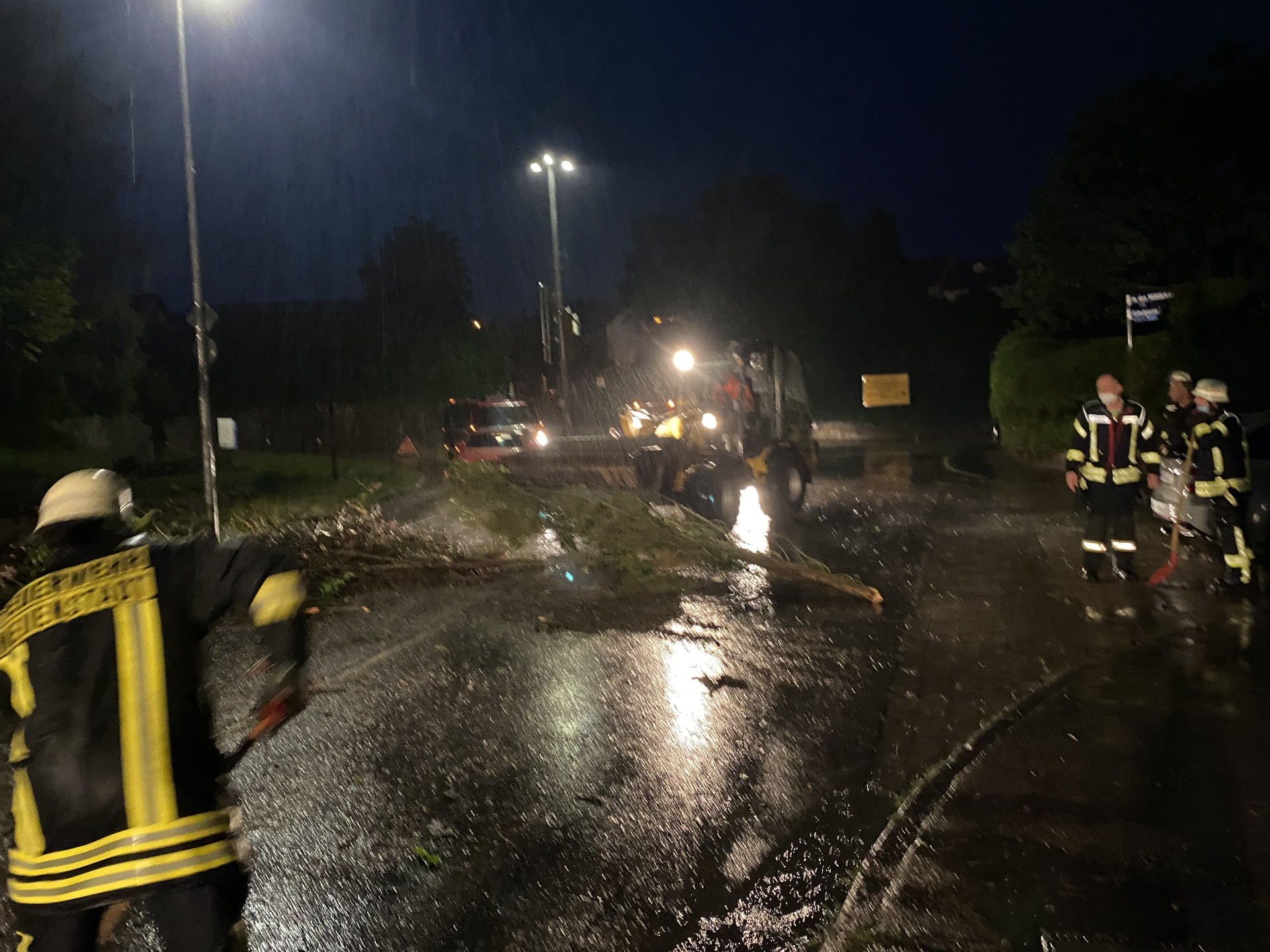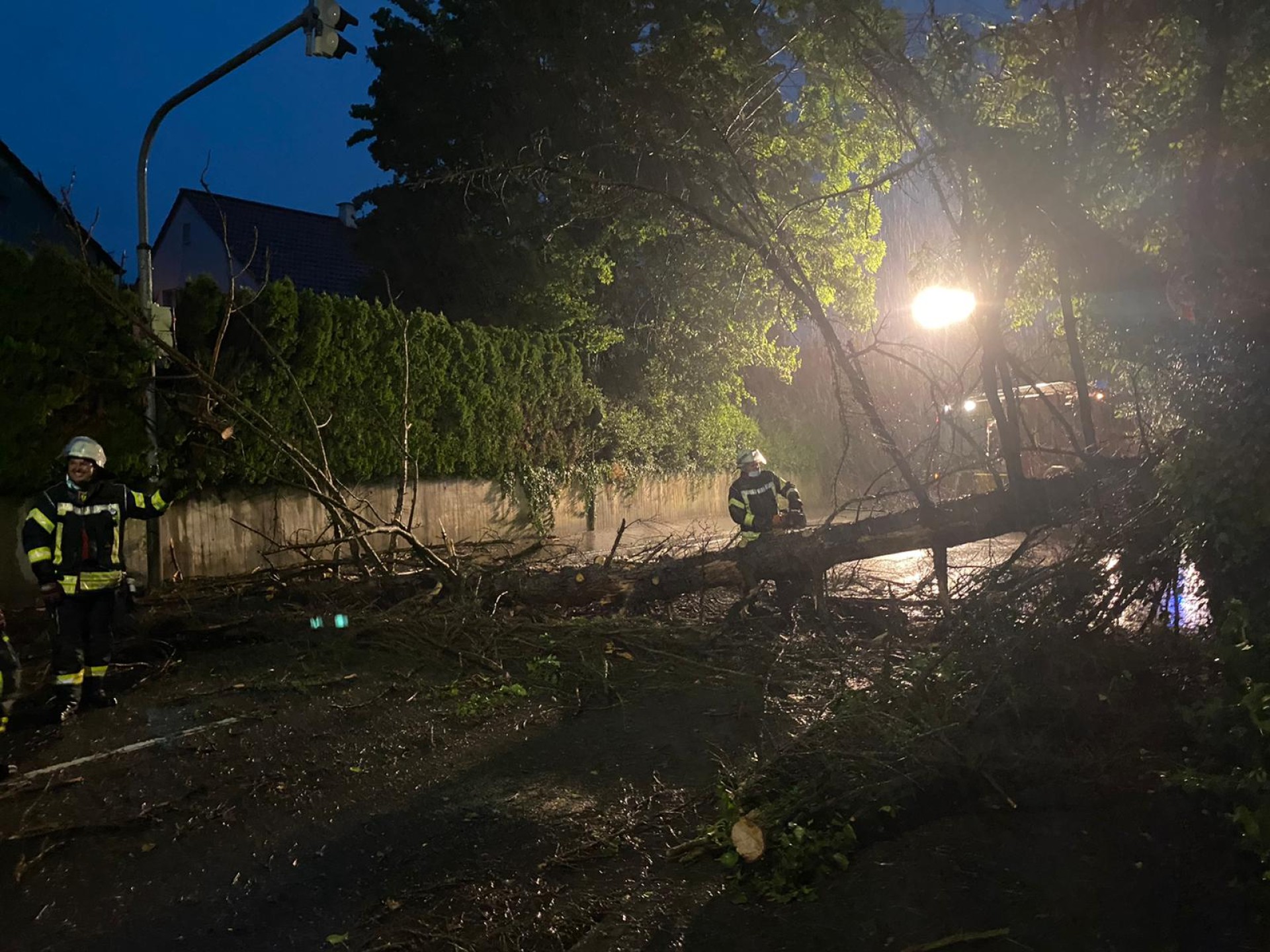 Durch Blitzeinschlag und Starkregen kam es in Neuenstadt und in Cleversulzbach auf der K2007 zum Umstürzen von Bäumen, die die Straßen blockierten.