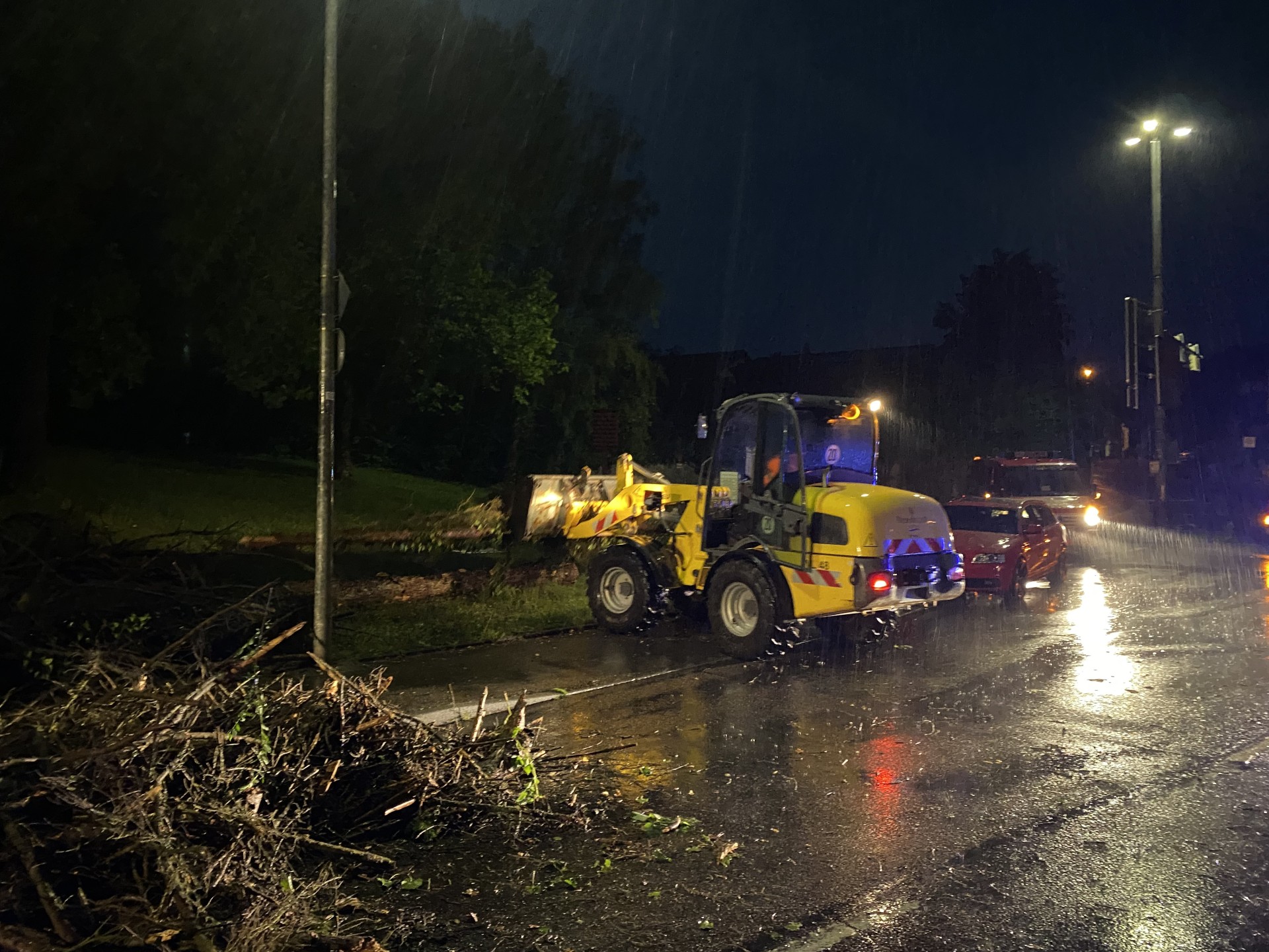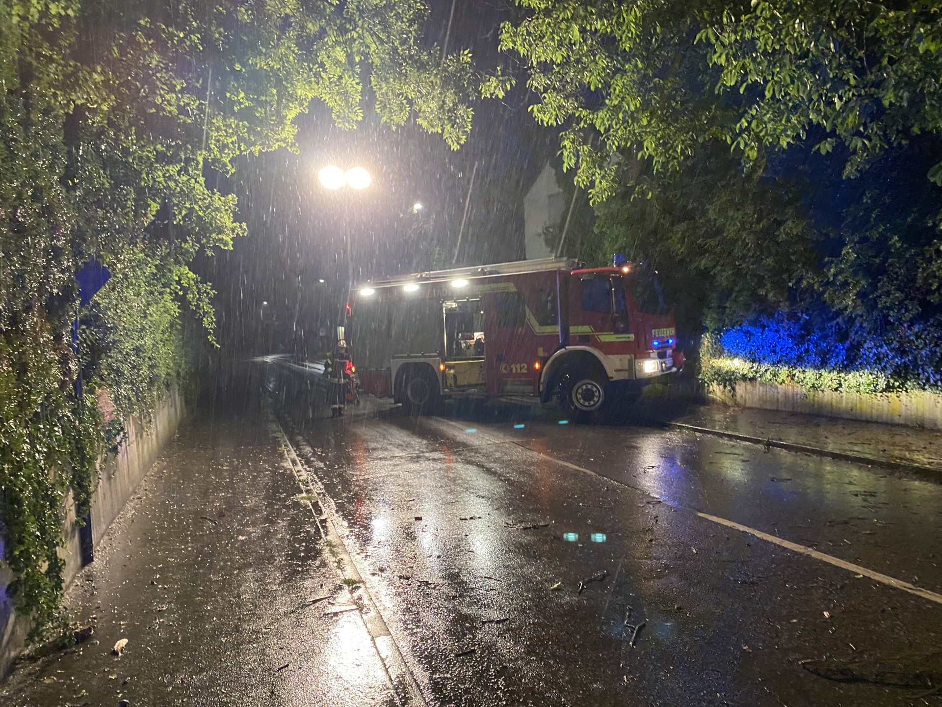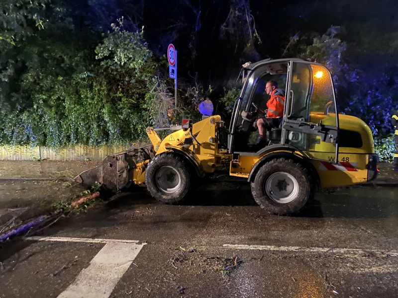 Durch Blitzeinschlag und Starkregen kam es in Neuenstadt und in Cleversulzbach auf der K2007 zum Umstürzen von Bäumen, die die Straßen blockierten.