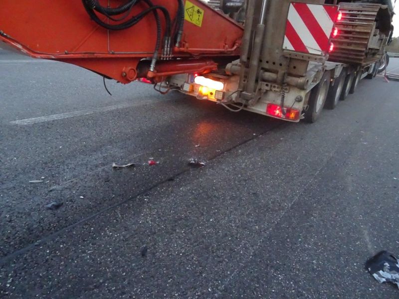 Auslaufendes Hydrauliköl aus LKW auf BAB 81 vor Parkplatz Sulzrain