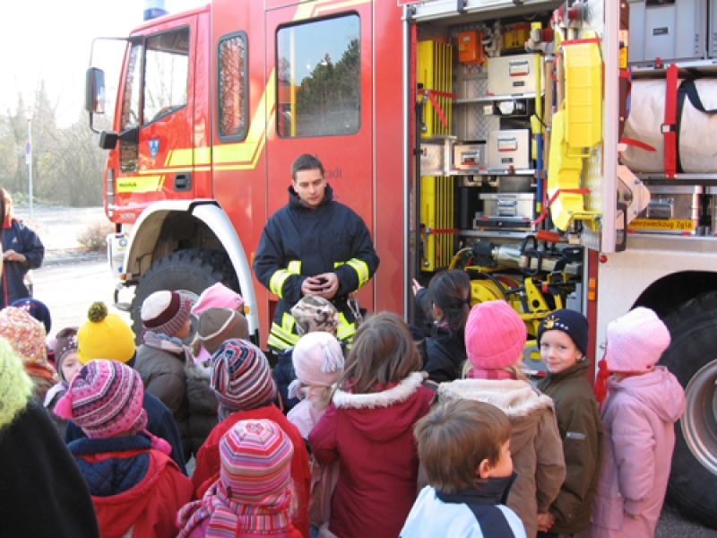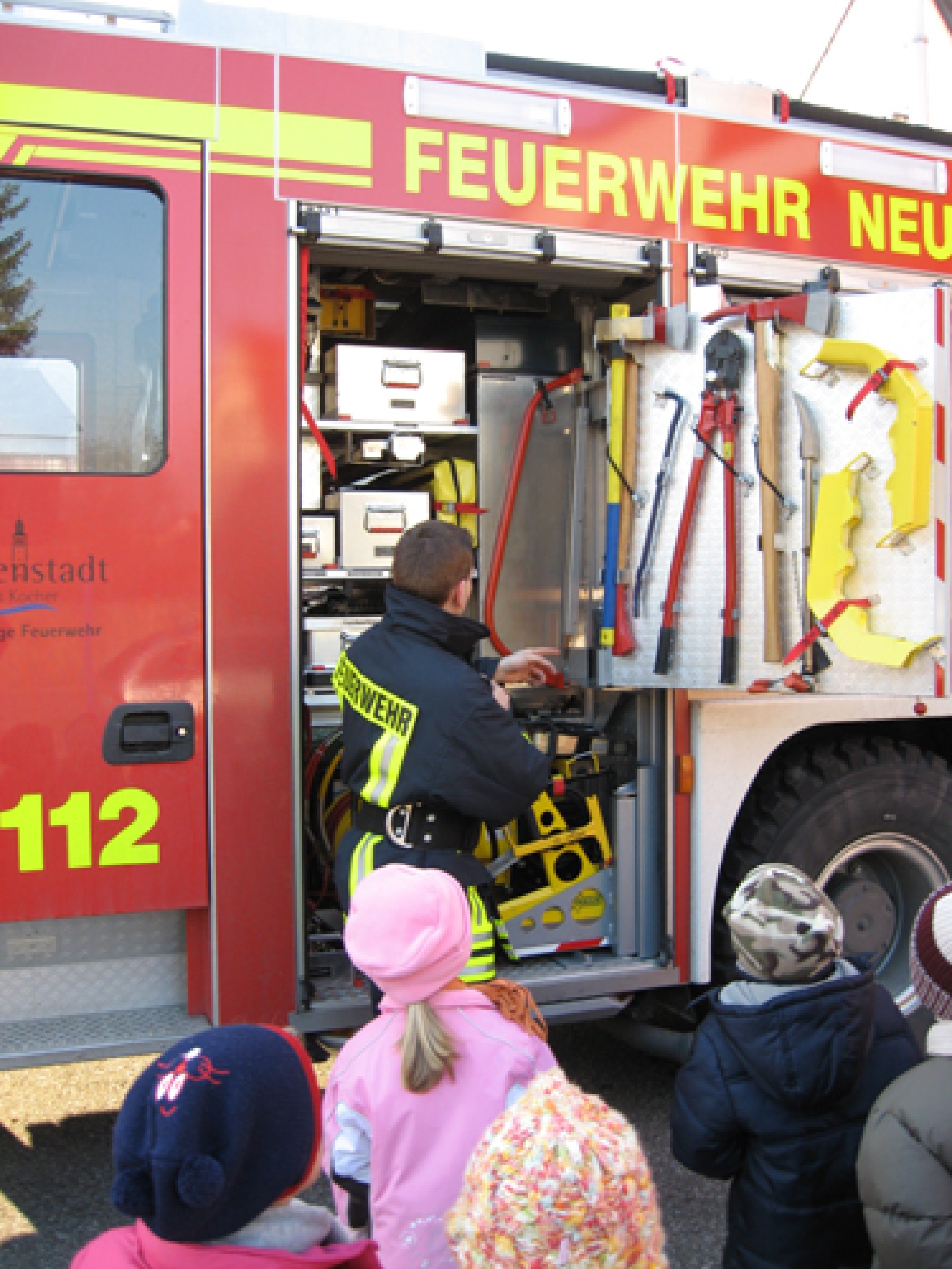 Die Feuerwehr Neuenstadt führte im Rahmen der jährlichen Schulungsmaßnahmen an öffentlichen Einrichtungen auch im evangelischen Kindergarten Neuenstadt wieder eine Brandschutzerziehung durch. Den Kindern wurde die feuerwehrspezifische Ausrüstung gezeigt, und das Verhalten im Brandfall verdeutlicht.