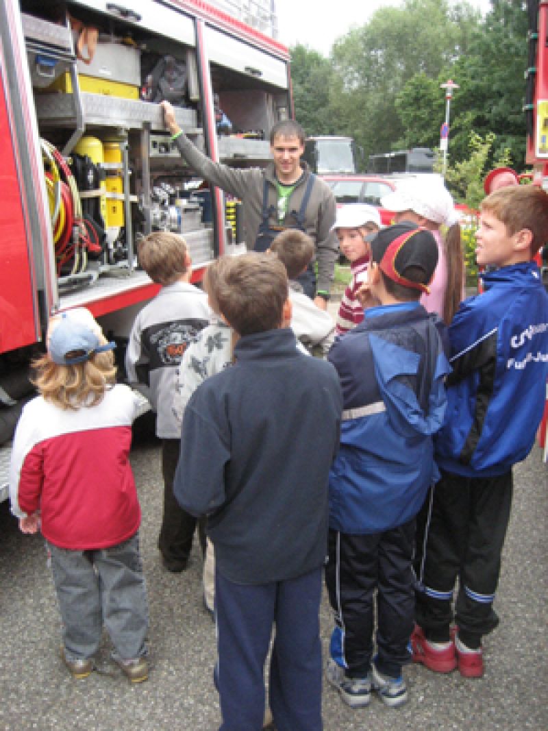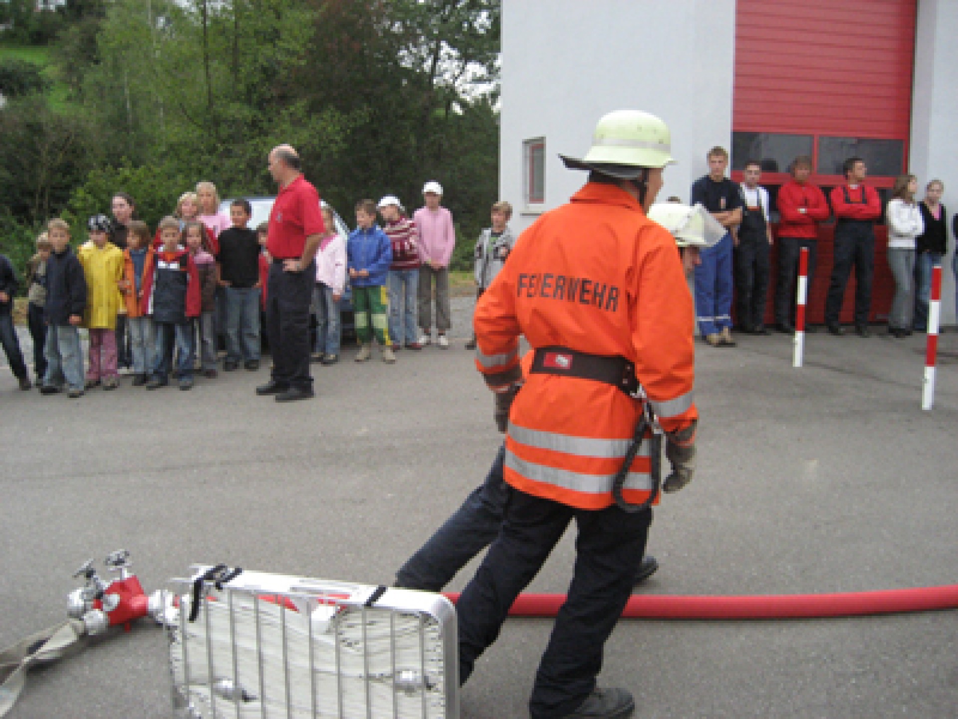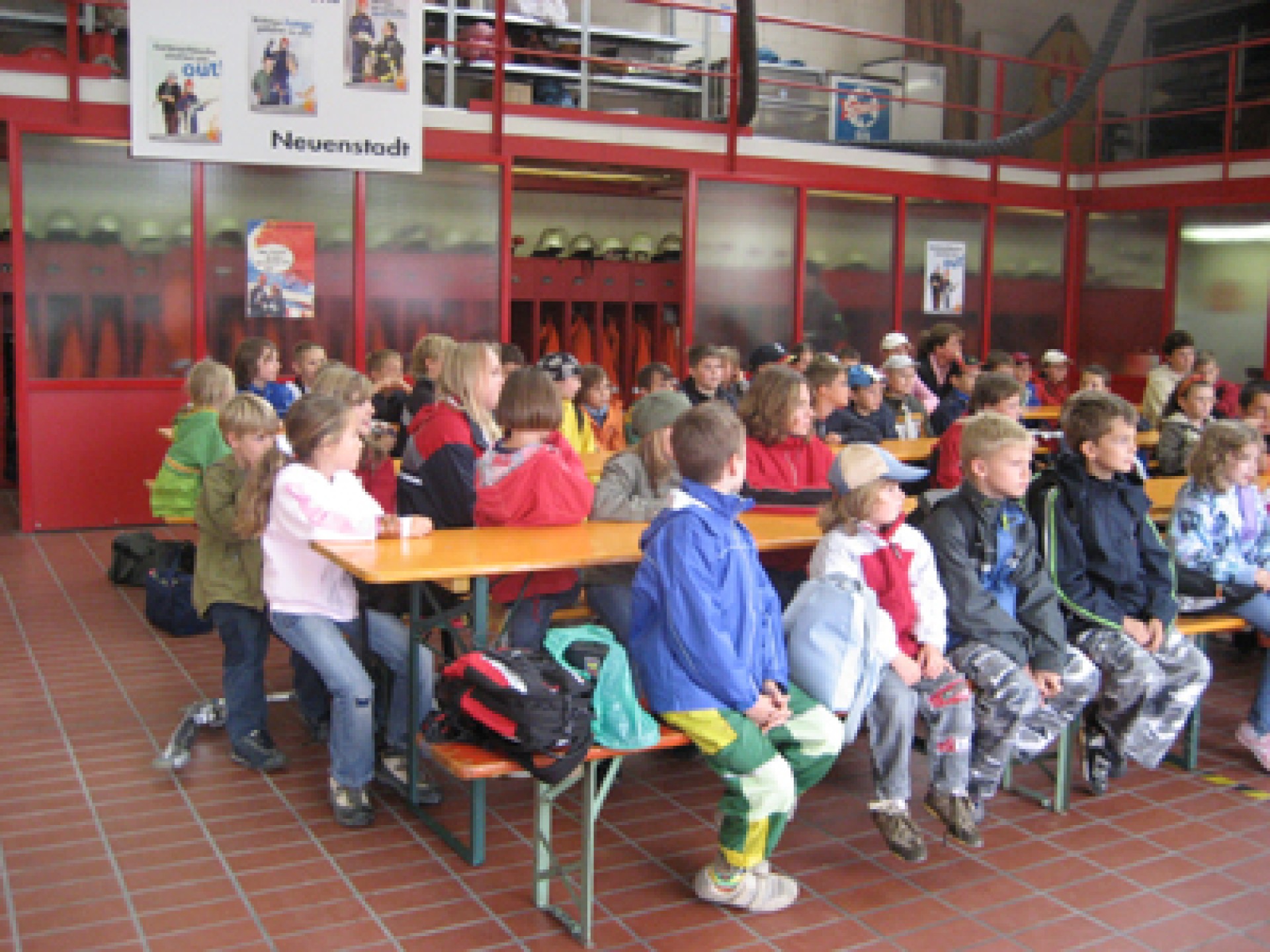 Das jährliche Kinderferienprogramm der Feuerwehr Neuenstadt war auch dieses Jahr wieder sehr gut besucht. Den 55 Teilnehmern wurde unter anderem eine Brandschutzerziehung, Ablöschen eines realen Feuers, Boot fahren und Schutzkleidung der Feuerwehr gezeigt beziehungsweise erklärt. Um die Angst der Kinder vor Feuerwehrleuten mit Atemschutz zu unterdrücken, wurde die Waschhalle eingenebelt. Ein ausgerüsteter Feuerwehrmann zeigte den Kindern das Vorgehen der Feuerwehr im Brandfall. Auch für das leibliche Wohl war wie immer bestens gesorgt.