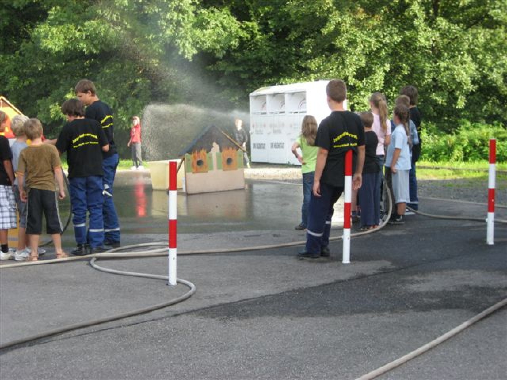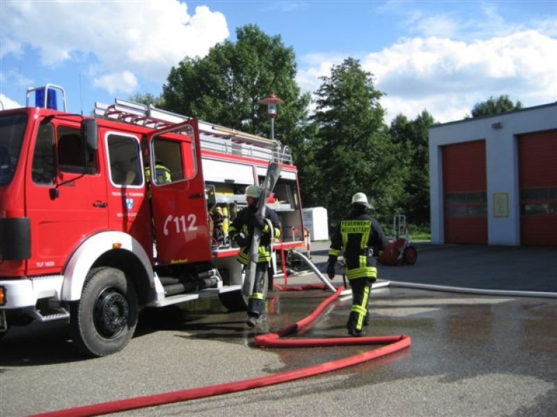 Das jährliche Kinderferienprogramm der Feuerwehr Neuenstadt war auch dieses Jahr wieder sehr gut besucht. Zunächst wurde den Kindern im Theorieteil das richtige Handeln im Brandfall beigebracht. Im darauf folgenden “praktischen” Teil dann war neben Boot fahren und Wett-Spritzen auch das Übungs-Modellhaus des Kreisfeuerwehrbandes im Einsatz. In diesem Gebäude kann sehr leichtverständlich und sinngerecht die schnelle Rauchausbreitung bei geöffneten Türen gezeigt werden. Doch auch das Gegenteil kann gut gezeigt werden – die verhinderte Rauchausbreitung bei geschlossenen Türen. Das Gebäude fand bei den Kindern großen Anklang. Ein ausgerüsteter Feuerwehrmann zeigte den Kindern das Vorgehen der Feuerwehr im Brandfall, und dass auch er nur “ein normaler Mensch” ist. Auch für das leibliche Wohl war wie immer bestens gesorgt.