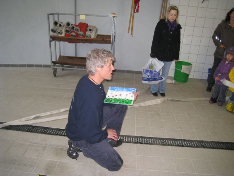 Im Rahmen der jährlichen Brandschutzerziehungen hatte die Abteilung Cleversulzbach nach deren Besuch im Kindergarten nun die Kinder zu Besuch im Feuerwehrhaus. An diesem Termin zeigten die Feuerwehrangehörigen um Abteilungskommandant Jürgen Heiß den Kindern die Räumlichkeiten und die Ausrüstung der Feuerwehr, die Geschwindigkeit des Umziehens im Einsatzfall sowie die benötigte Schutzkleidung. Als Höhepunkt des Tages durften die Kinder trotz des schlechten Wetters selbst “löschen” beziehungsweise die Kübelspritze bedienen.