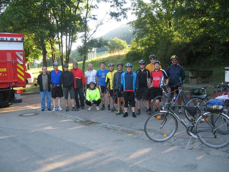 Freitags hatten wir die Räder im Gerätewagen Transport verlastet, so dass wir uns am Samstag früh ab 06.00 Uhr auf den Weg zur Kocherquelle, dem sog. „Schwarzen Kocher“ in Oberkochen machen konnten.