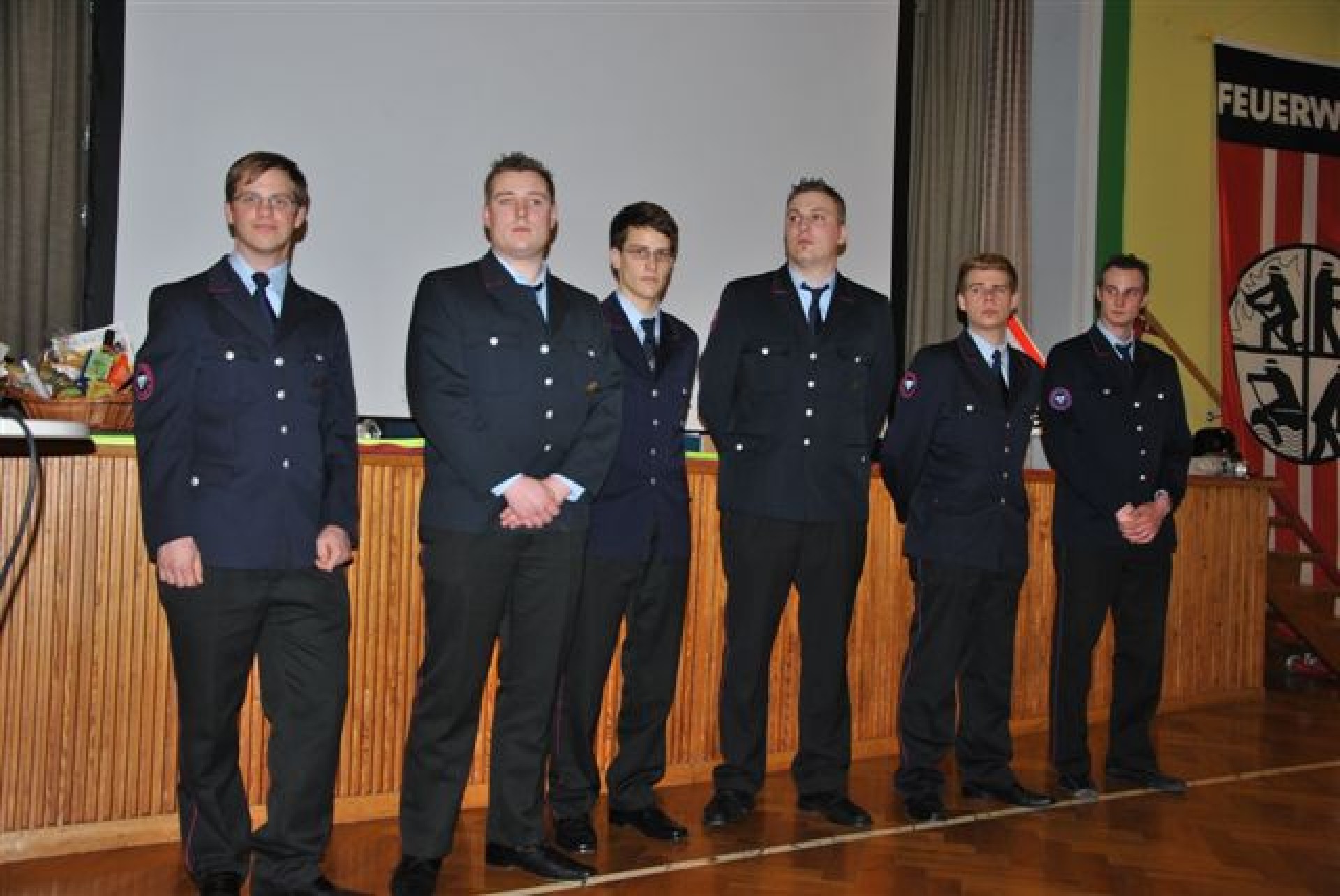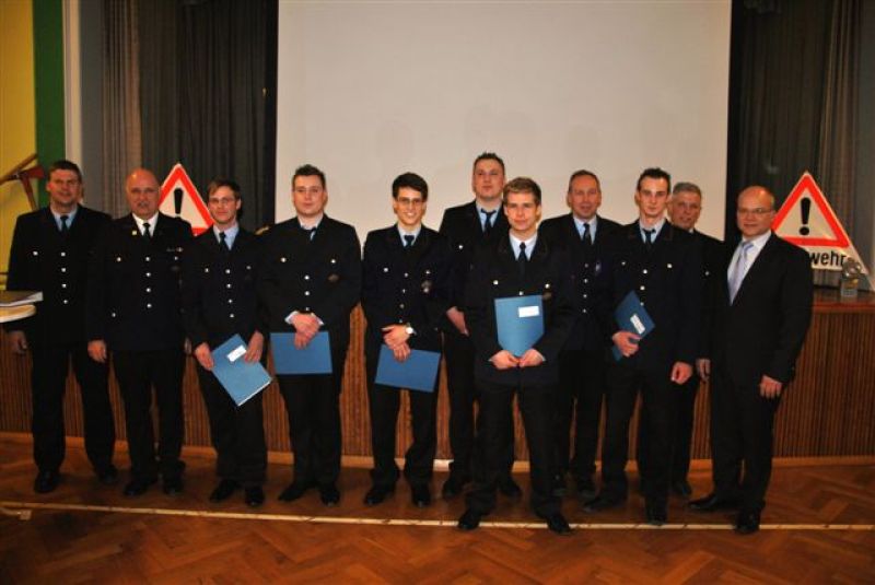 Bedingt durch Lehrgänge und nach Erreichen eines gewissen Dienstalters gab es auch 2012 wieder eine Reihe an Beförderungen, so wurde zum Oberfeuerwehrmann Constantin Berk, Maximilian Bohn, Nico Drewanz, Patrick Feuchter, Kevin Grünagel, Benjamin Landsgesell, Maximilian Petermann, Philipp Simpfendörfer, Mario Stephan und Gabriel Wollensack befördert. Nach einer Dienstzeit von 10 Jahren ist Matthias Ritter nun Hauptfeuerwehrmann. Markus Gölthenboth konnte nach Ablegung des Gruppenführer Lehrgangs zum Löschmeister und Sven Brixner zum Brandmeister nach dem Zugführerlehrgang ernannt werden. Detlef Connert ist nach einer zehnjährigen Dienstzeit als Löschmeister nun Oberlöschmeister.