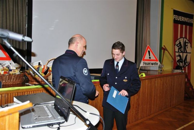 Jugendfeuerwehrwart Tobias Schaffroth stellte die Arbeit der Jugendabteilung vor, im abgelaufenen Jahr hatte die Jugendfeuerwehr fast 40 Mitglieder erreicht, erfreulich hier ist das mittlerweile 20% der Mitglieder Mädchen sind. Höhepunkt für viele Jugendliche war hier wieder der Berufsfeuerwehrtag im Sommer. Auch war die JF Neuenstadt auf Landesebene erfolgreich, im neuen Bilderpool des Landesverbandes werden die Neuenstädter den Bereich Wettbewerbe mit abdecken. Das Zeltlager führte die jungen Floriansjünger im Jahr 2012 zum Kreiszeltlager nach Neckarsulm.
