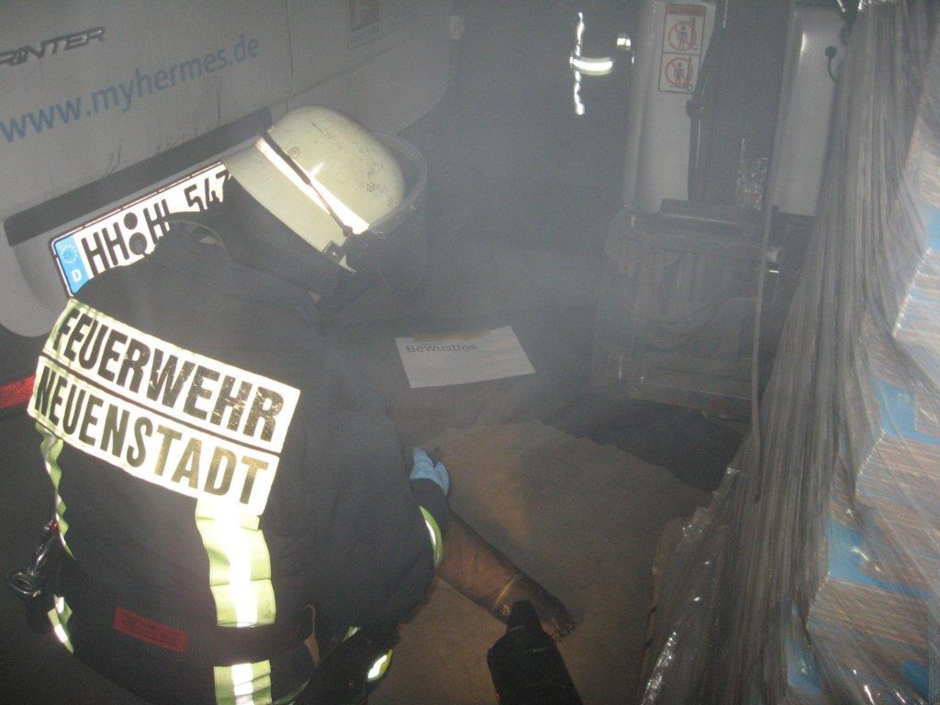 Feuerwehr führt im Verwaltungs- und Kommissioniergebäude der Fa. Hermes eine Brandschutz- und Rettungsübung durch