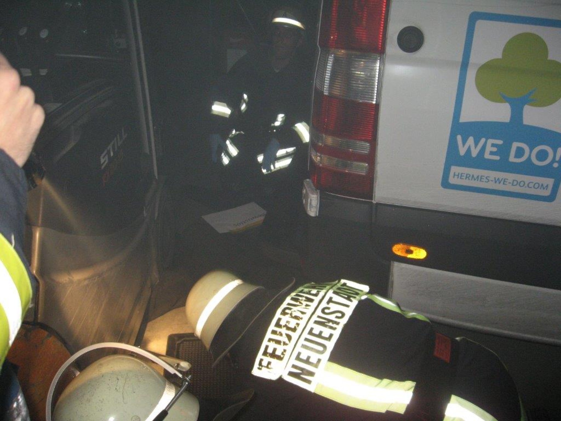 Der Standortleiter der Fa. Hermes, Herr Kinkelin bedankte sich bei der Feuerwehr für die gezeigte Leistungsbereitschaft mit einem großzügigen Vesper.