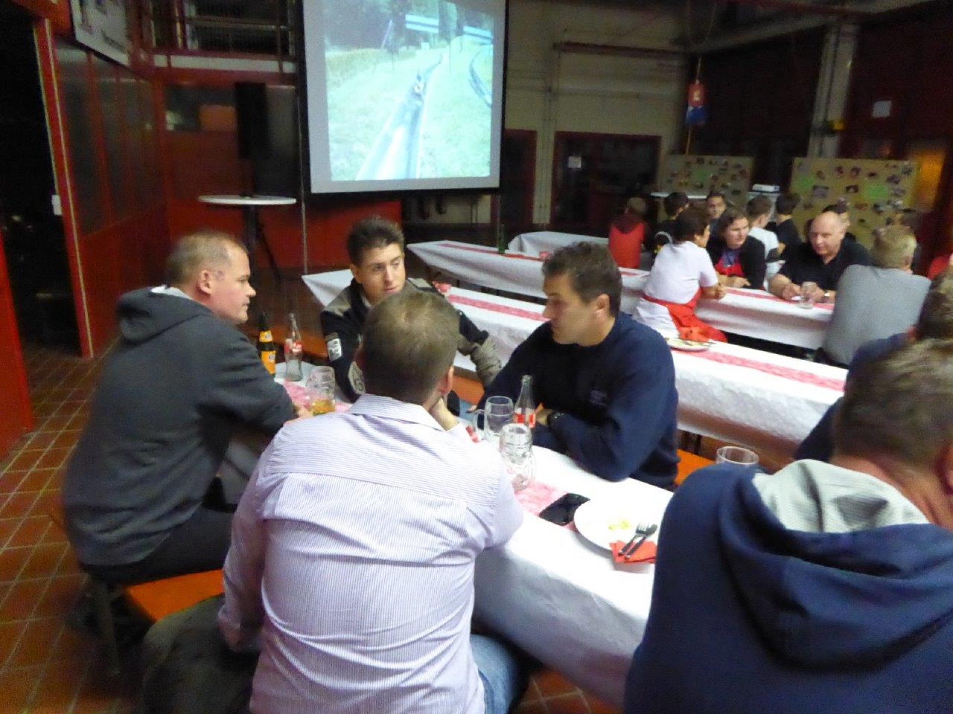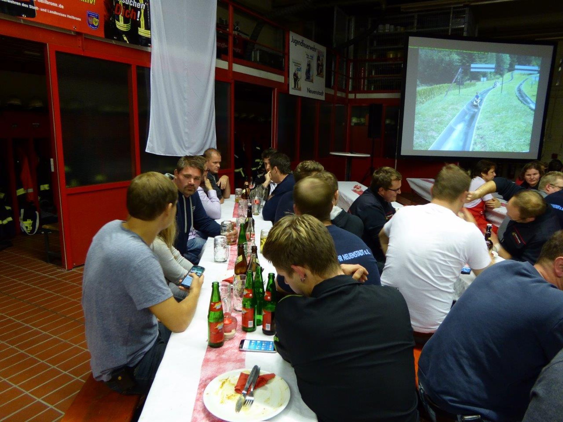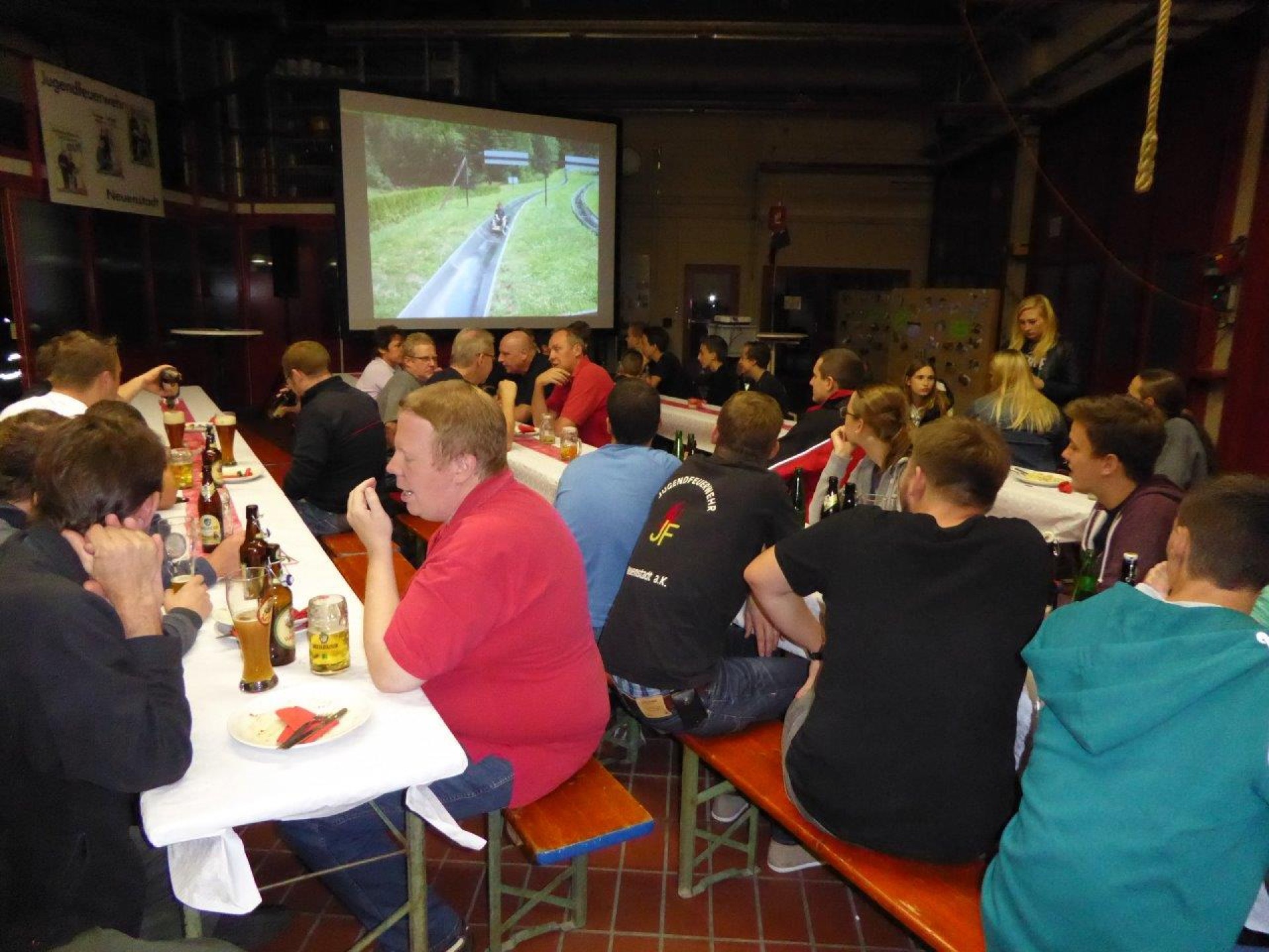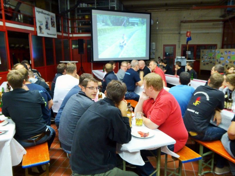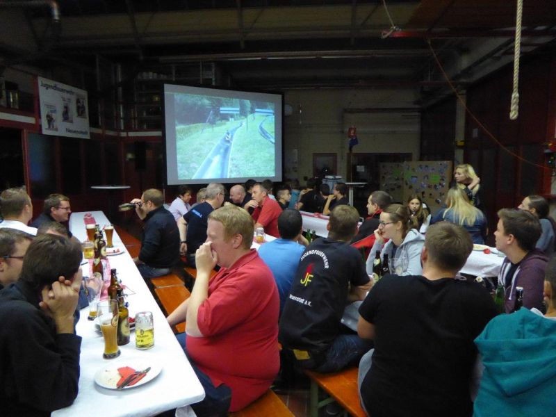 Kommandant Hartmut Schaffroth und Jugendfeuerwehrwart Tobias Schaffroth begrüßten die Gäste und ließen über 1500 Bilder, von der Gründung bis heute, zur Belustigung der ehemaligen Jugendfeuerwehrler über die Leinwand laufen.
