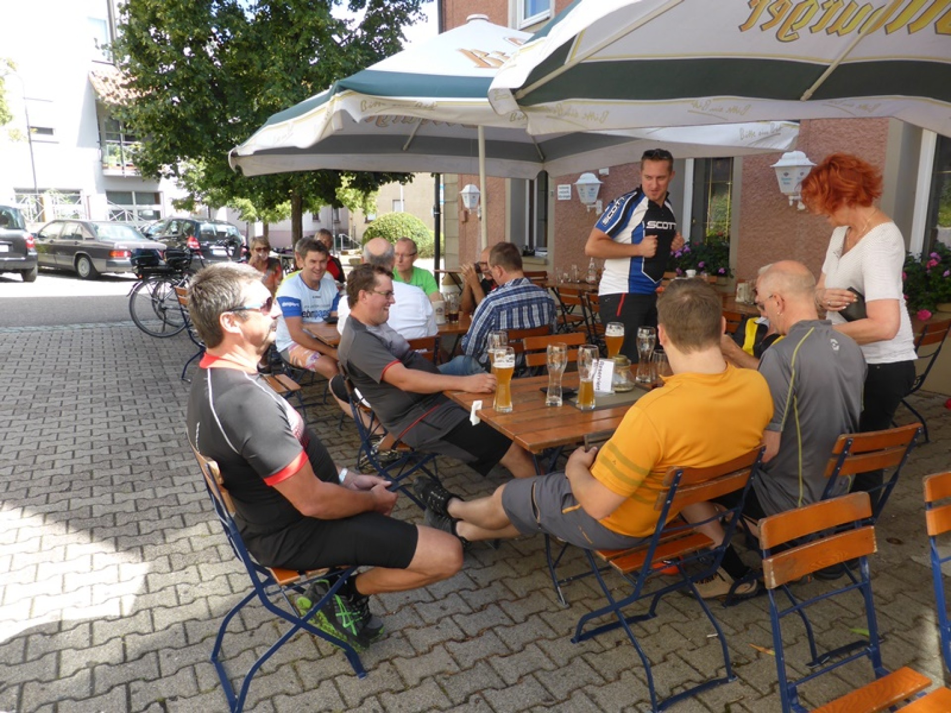 Durch eine Bilderbuchlandschaft radelten wir der Enz entlang von der Quelle bei Enzklösterle über Pforzheim nach Vaihingen. Einen Zwischenhalt mit einem zweiten Frühstück gönnten wir uns in der bekannten Kurstadt Wildbad. Quartier wurde in Gündelbach im Kachelofen bezogen. Ein gutes, reichliches Abendessen und eigener Wein vom Wirt ließen schnell eine gute Stimmung aufkommen.