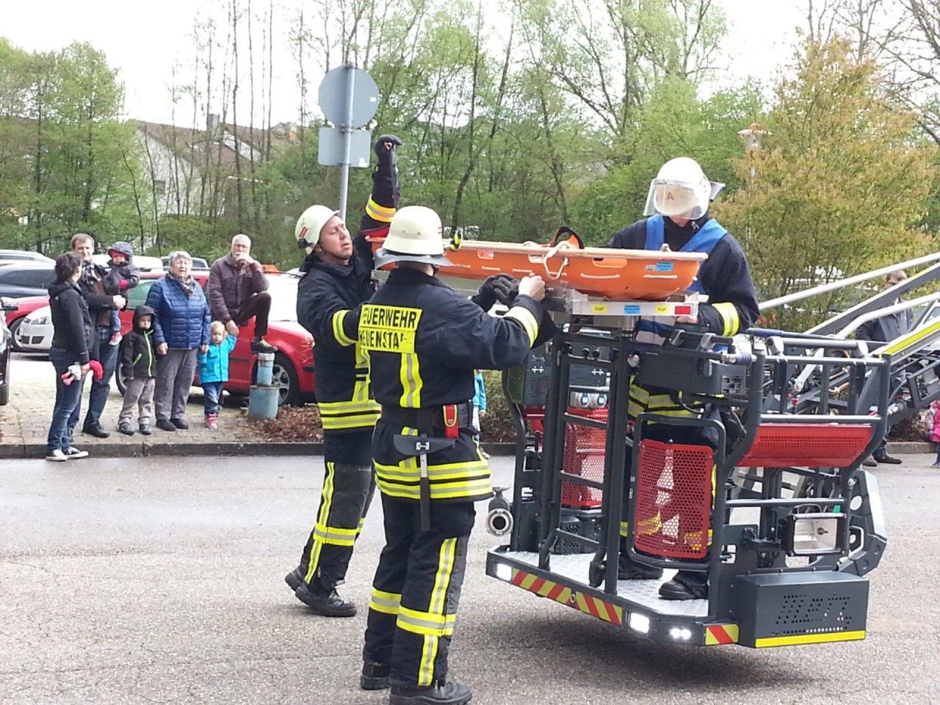 Am Sonntagnachmittag zeigten die Kameraden der Einsatzabteilung wie mit dem Korb der Drehleiter eine Personenrettung durchgeführt werden kann.