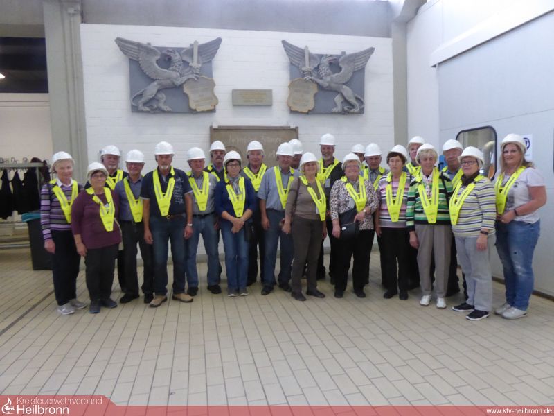 Die Altersabteilung der Freiwilligen Feuerwehr Neuenstadt Abteilung Stein/Kochertürn traf sich am Freitag, 13.Oktober 2017 um 12.00 Uhr am Feuerwehrhaus in Stein. Wir fuhren dann mit zwei MTW und privaten PKW nach Offenau zur Südzucker AG. Dort wurden wir am Eingang von Frau Merz in Empfang genommen, die sich als unsere Werkführerin vorstellte. Nach einer ersten Erklärung im Hof des Werkgeländes, bekam jeder von uns einen Schutzhelm verpasst. Dann ging es in den Vorführraum, dort wurde uns die Geschichte der Südzucker und das Werk vorgestellt. Mit zwei Filmen wurde uns die Produktion und die Produkte nahe gebracht! Beim Verlassen des Vorführraumes bekamen wir Empfänger und Kopfhörer, um bei der Führung den Erläuterungen von Frau Merz folgen zu können. Die Führung konnte beginnen!