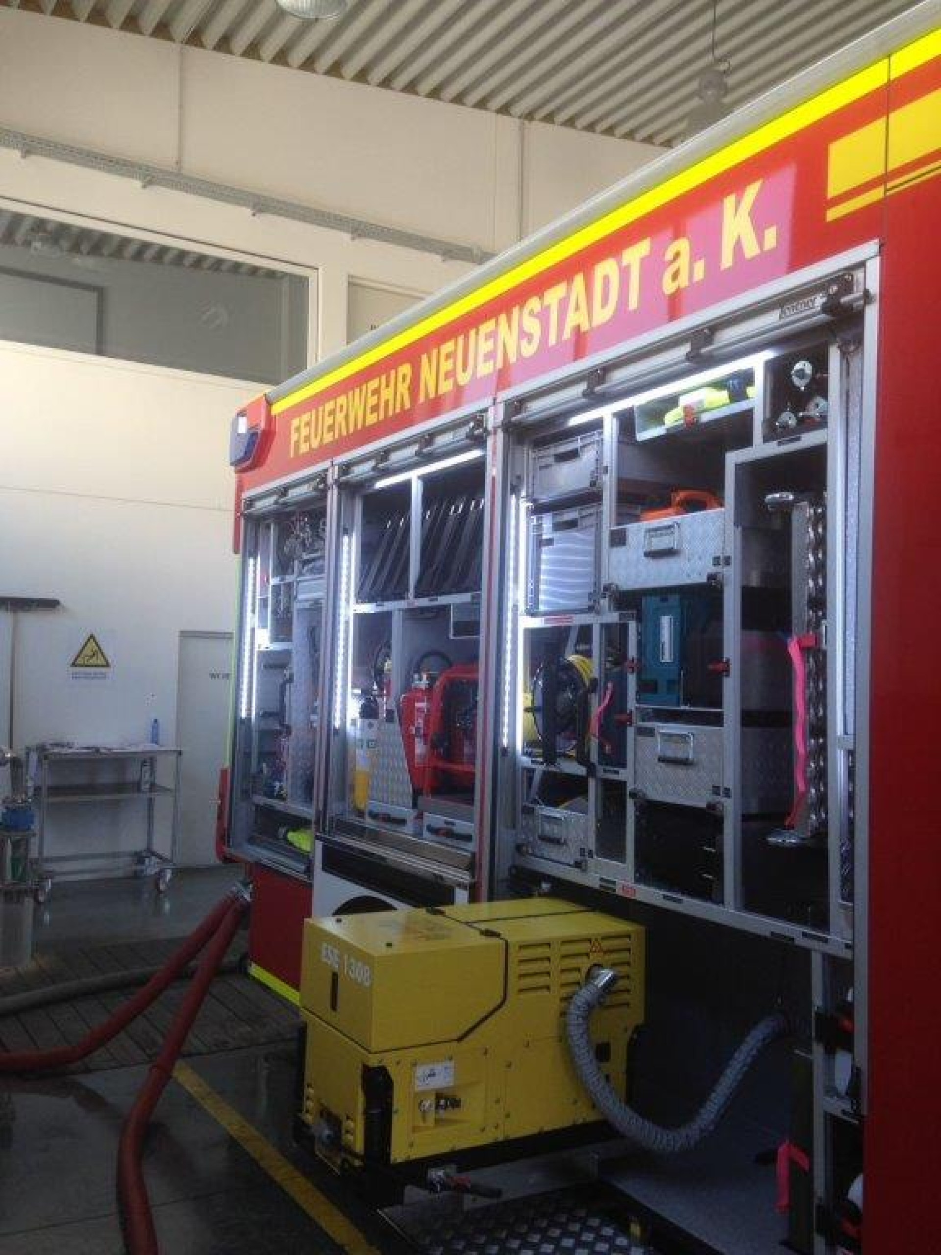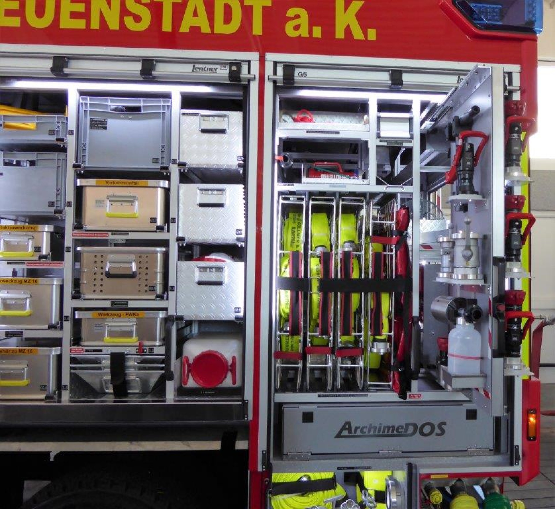 Vielen Dank allen Beteiligten, die im Beschaffungsausschuss mitgewirkt haben. Ich denke, das Ergebnis kann sich nicht nur sehen lassen, es ist auch optisch und funktional gelungen. Ich bitte auch um Verständnis, dass nicht alle zur Abnahme fahren durften, diese war eigentlich auf vier Personen limitiert, die Einweisung auf acht. Bei der Endverhandlung konnte ich noch eine Schulung der Maschinisten vor Ort in Neuenstadt aushandeln. Diese wird in den nächsten Wochen an einem Samstag stattfinden.