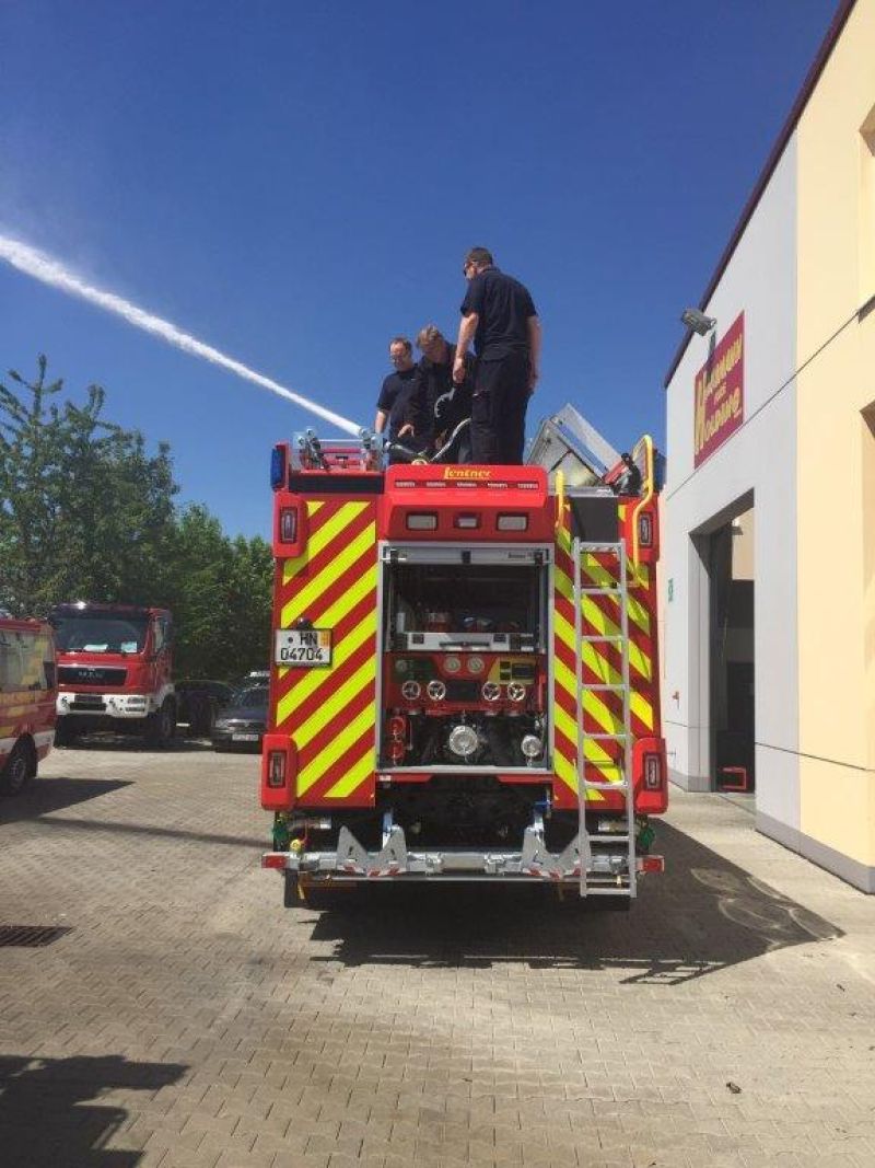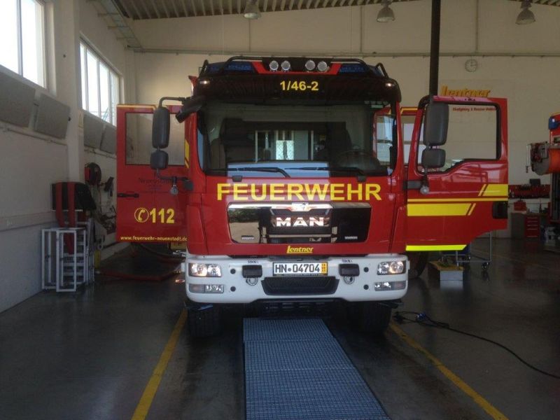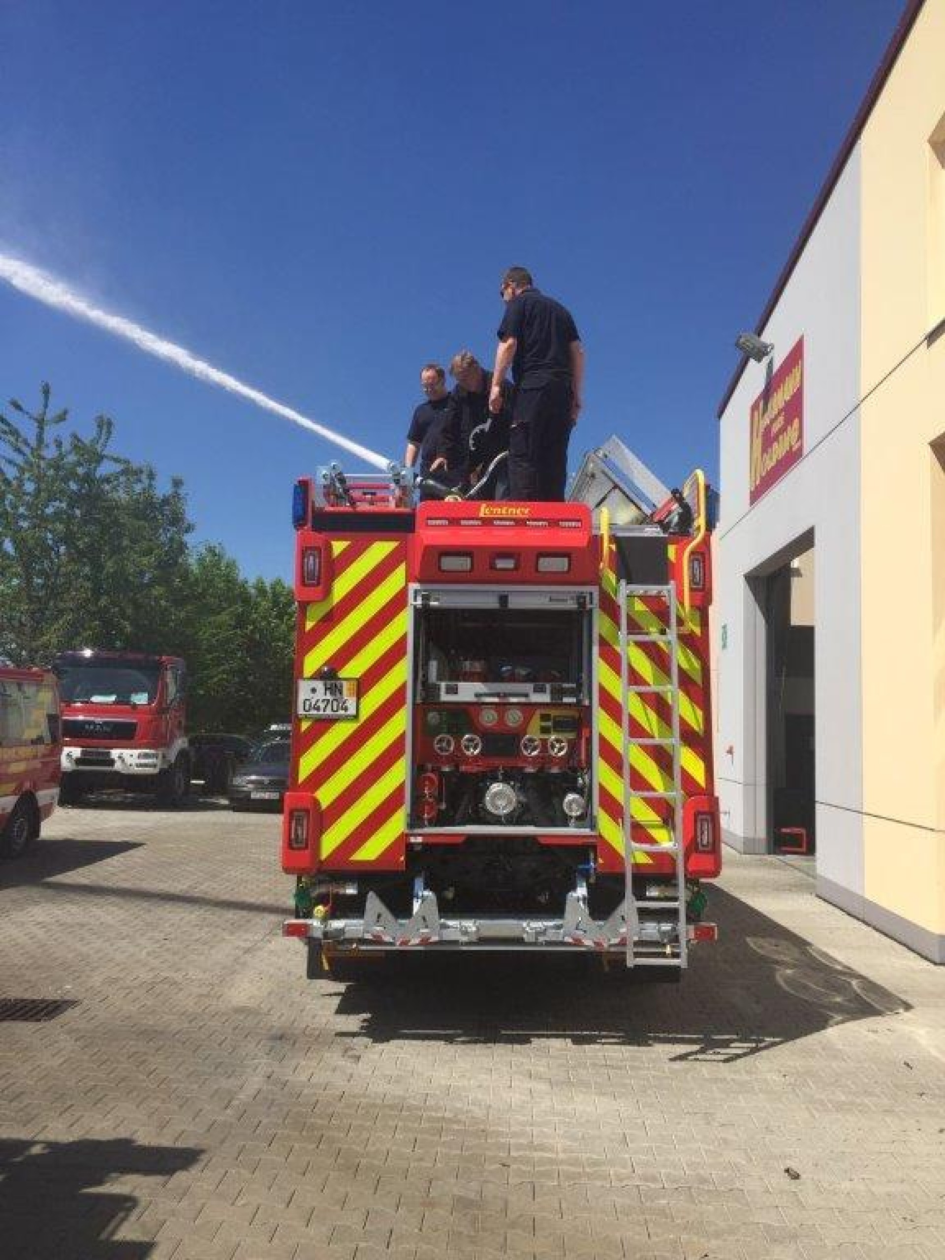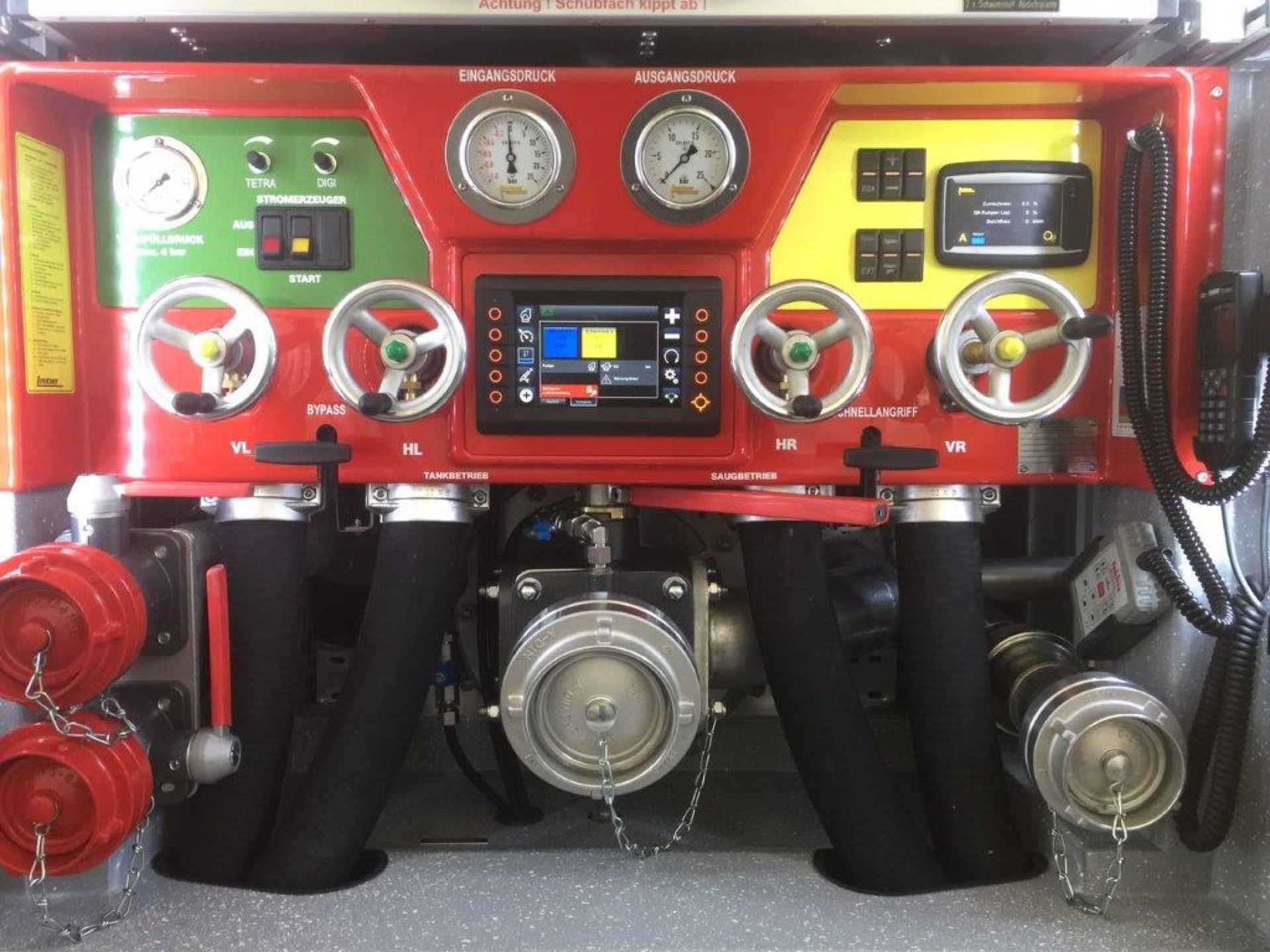 Sämtliche Funktionen sowie die Pumpenanlage wurden am Prüfstand der Fa. Lentner durchgefahren und getestet. Das Fahrzeug wurde auch nochmal am Ende gewogen. Das Ergebnis war sehr positiv. Trotz Wasserfüllmenge 2400l und Schaumzumischanlage, bleibt noch eine Gewichtsreserve von über 500 kg.