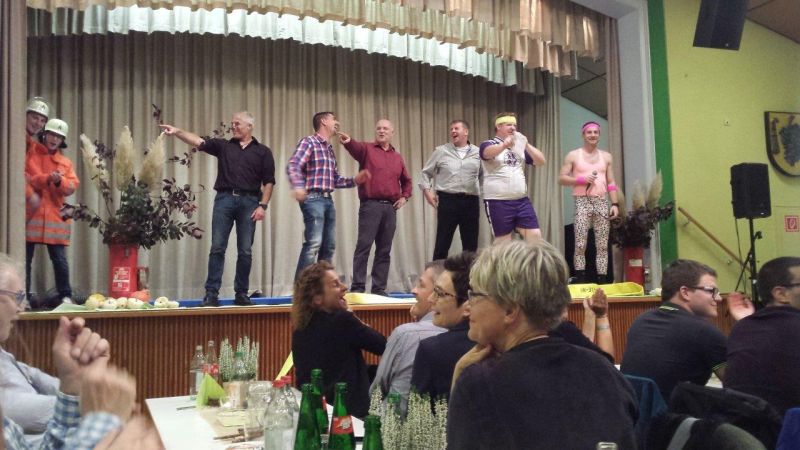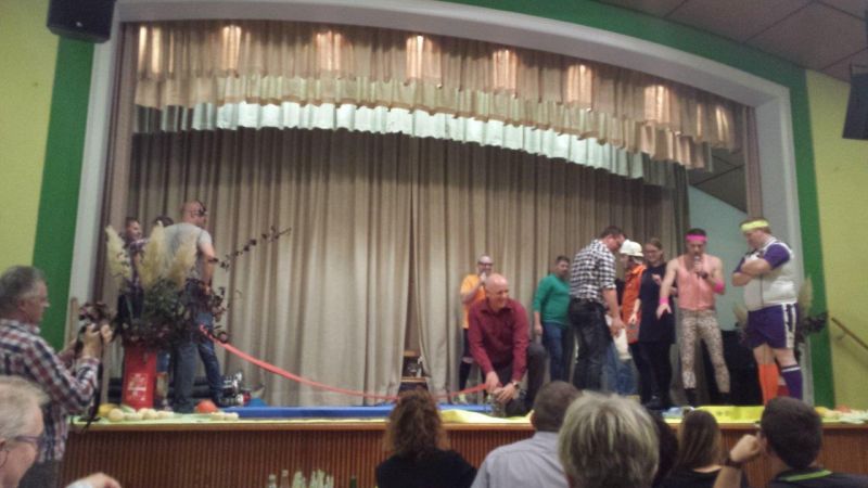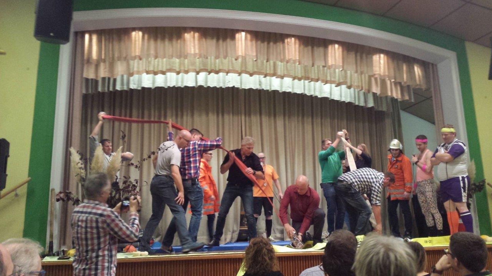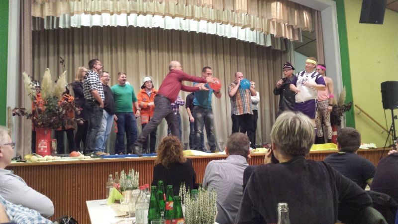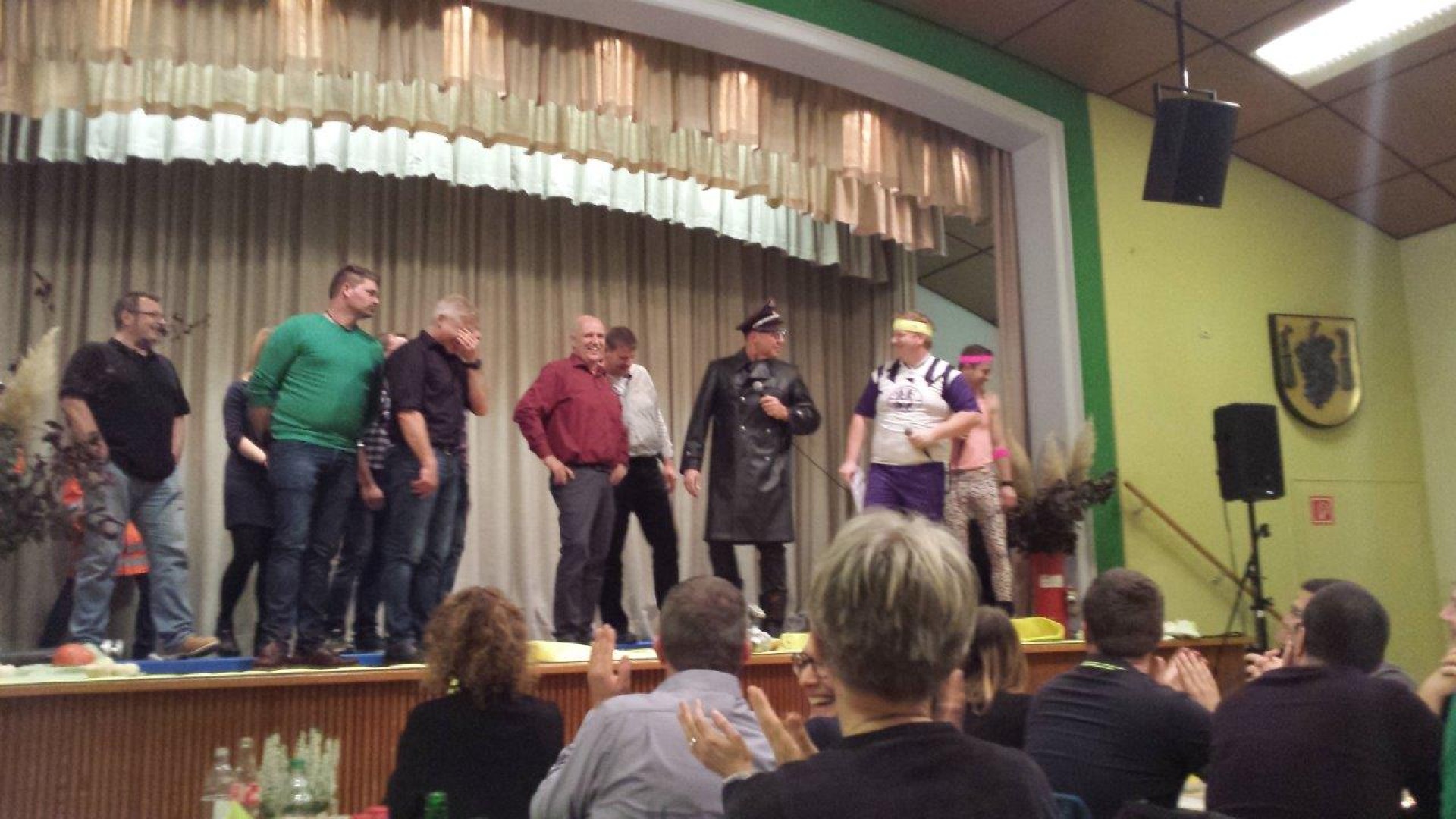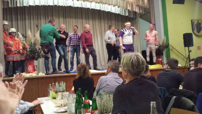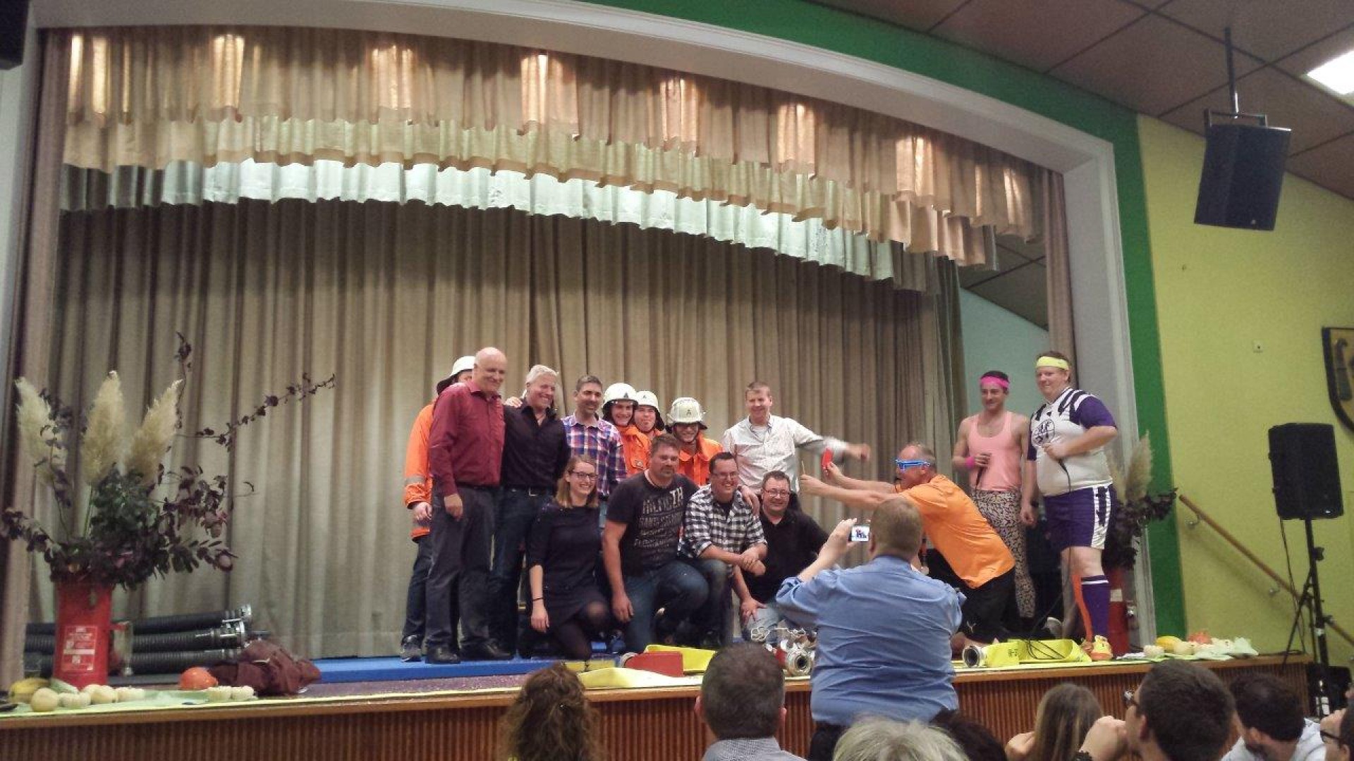 In diesem Jahr wurde wieder ein bunter Abend mit einem abwechslungsreichen Programm den fast 200 Besuchern geboten. So mussten sich Kommandant Hartmut Schaffroth gemeinsam mit den Abteilungskommandanten Andreas Küstner, Jürgen Heiß und Matthias Belz in einem Wettkampf vier Mitgliedern aus der Mannschaft stellen. Hier wurde unter anderem Wettkuppeln von Saugschläuchen und das stopfen eines Leinenbeutels als Disziplinen abgeprüft. Der Schiedsrichter des Wettbewerbs und Abteilungskommandant i.R. Roland Grünagel stellte hinterher ein gerechtes Unentschieden fest.