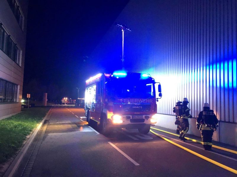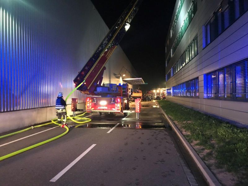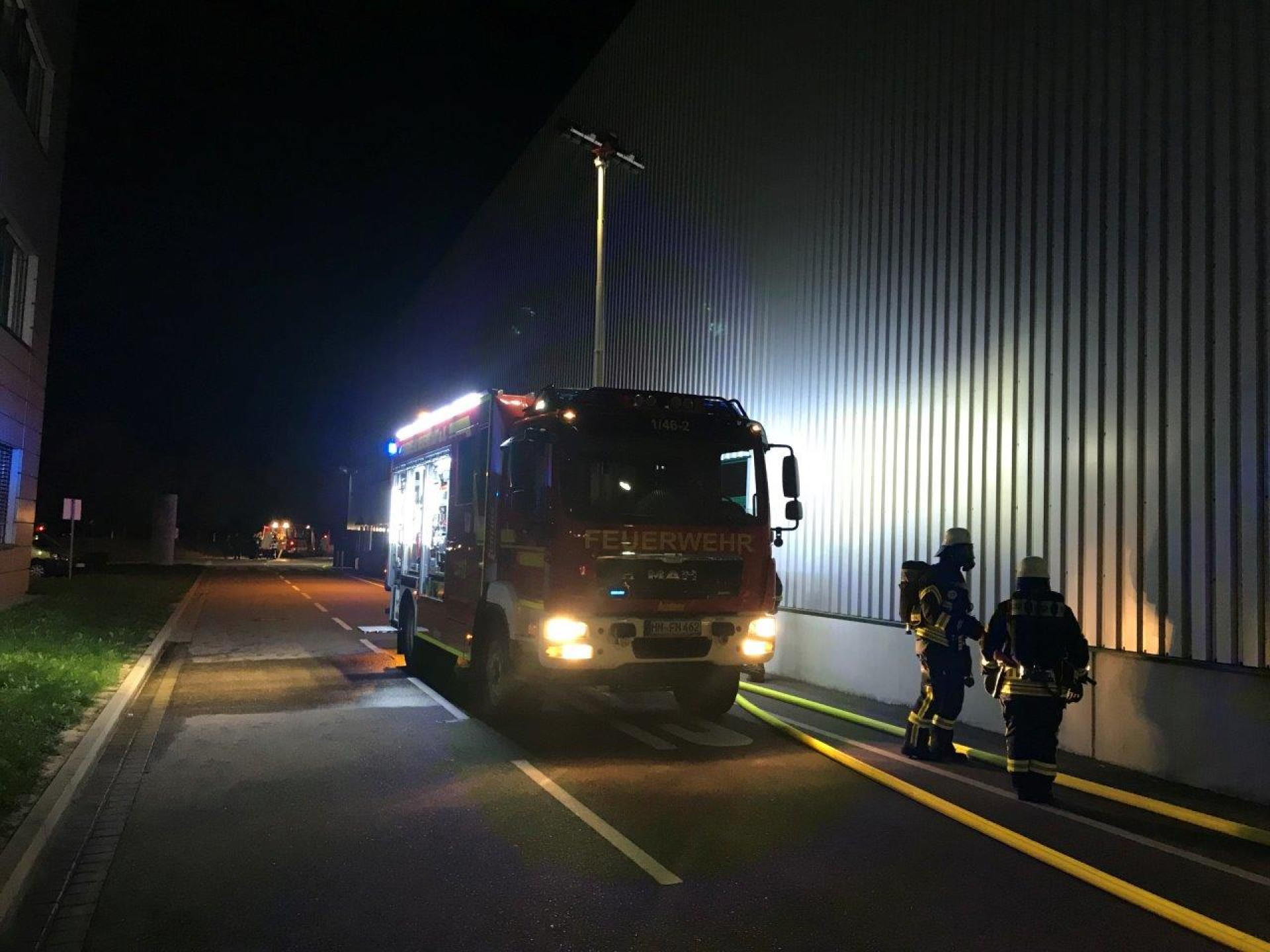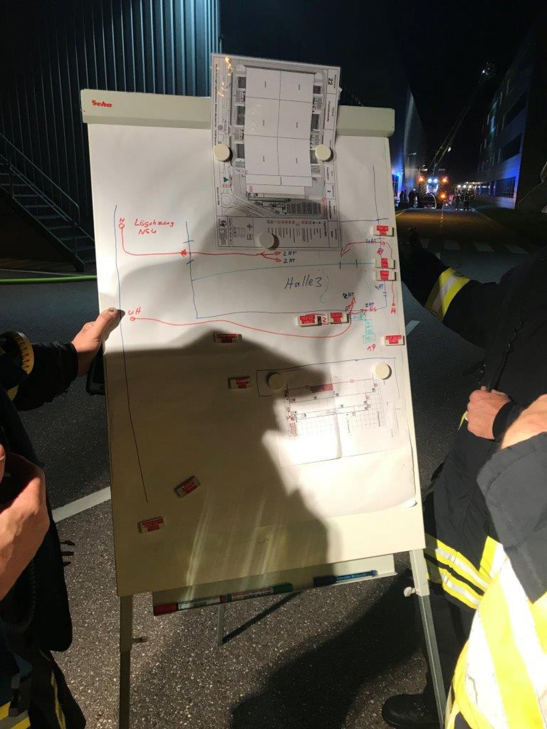 In der Nachbesprechung dankte Kommandant Schaffroth allen Übungsteilnehmern für ihren Einsatz und gab anhand einer kurzen Führung Einblick in die Fertigungshallen des Hochregalherstellers am Standort Neuenstadt.